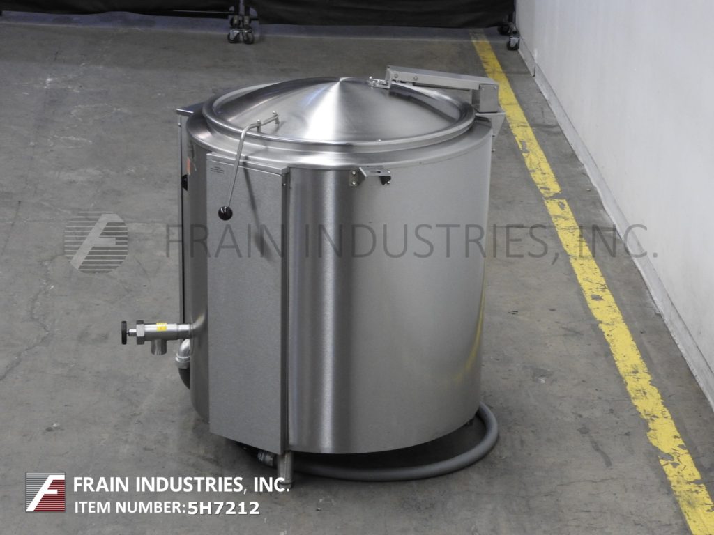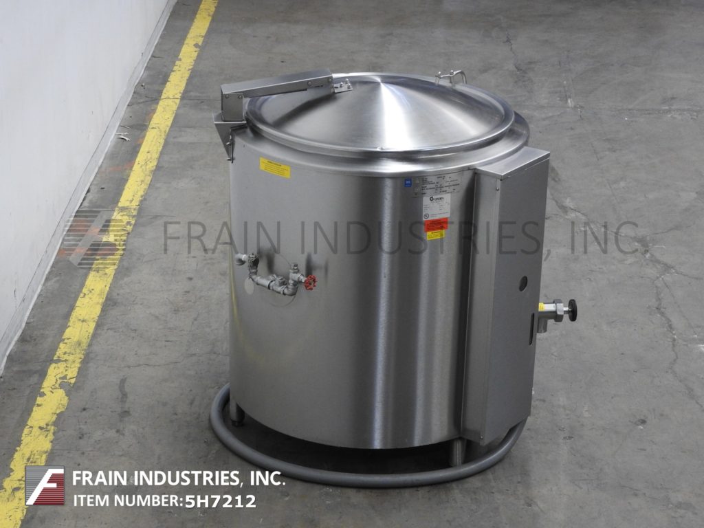 返回所有设备呻吟,型号EE-80,304不锈钢,80加仑自给式电动,蒸汽夹套水壶,每小时加仑产品 - 取决于材料和应用。配备32“ID X 28”深烹饪室,配有(1)件铰链翻转36“OD顶盖,全蒸汽夹克,MAWP额定为30 PSI @ 300 Deg F.和MDMT的-20 Deg F @ 30 psi,(2)1“OD螺纹夹套和出口。内部倾斜底部有1-1 / 2“OD侧底底排放,带有12”地板清晰度控制面板开/关开关,具有恒温器热控制表盘和压力表。安装(3)高度可调腿。