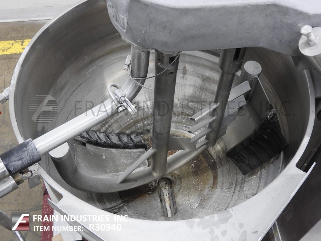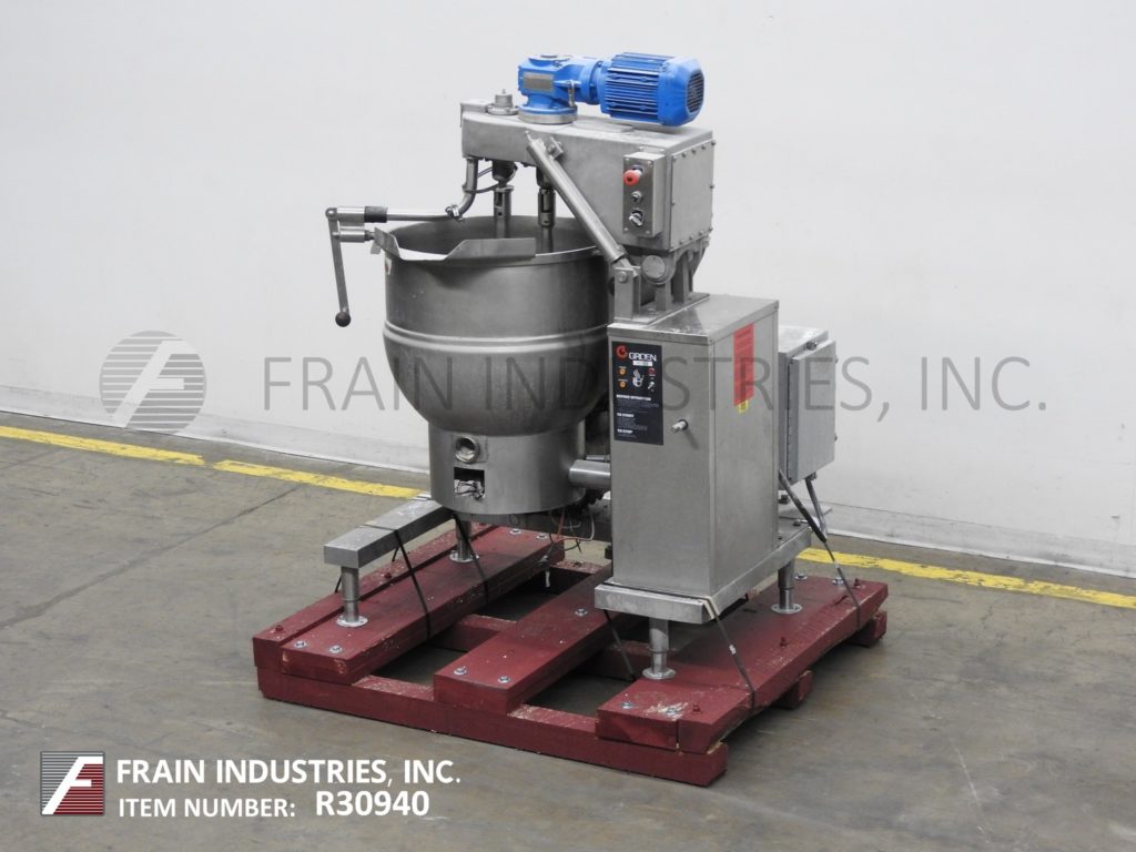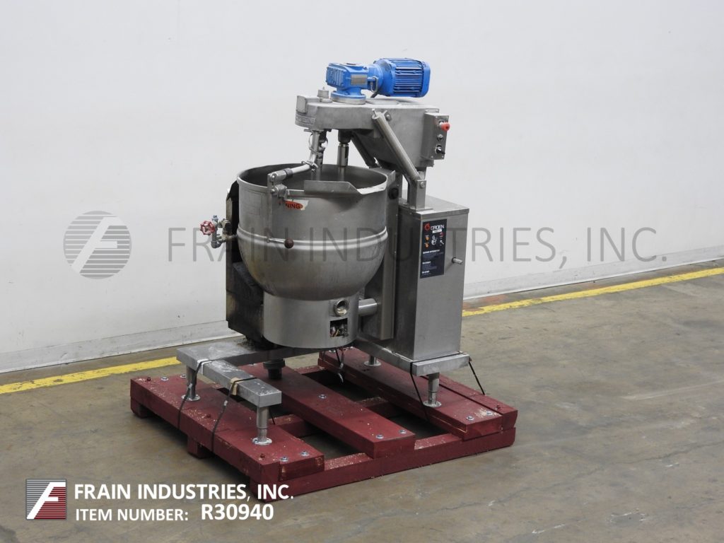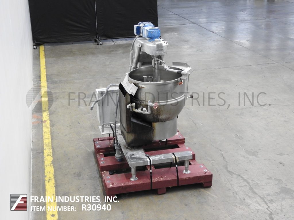 返回所有设备Groen型号DHT/1-40,不锈钢,40加仑,气体加热,1/2蒸汽夹套混合釜,每小时产品数加仑-取决于材料和应用。容器尺寸:26"内径x 24"深,带有桥式扫掠搅拌器和二次采油树混合器。碟底有3"外径/ 2-1/2" ID侧底放电与22"地间隙。控制面板有开/关加热开关,带温度控制器和压力表的e-stop。安装在“U”型不锈钢框架与(4)调平腿。国家董事会号码94471