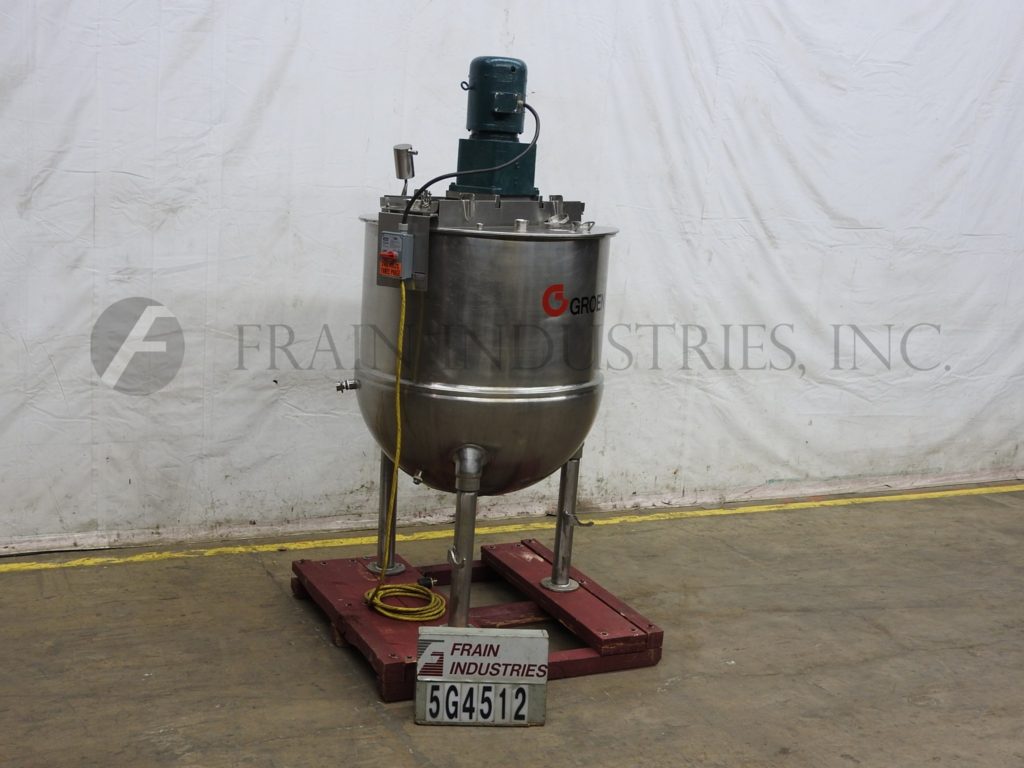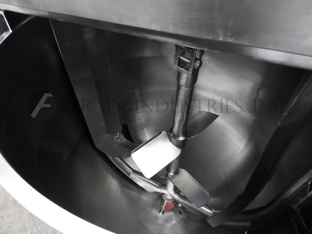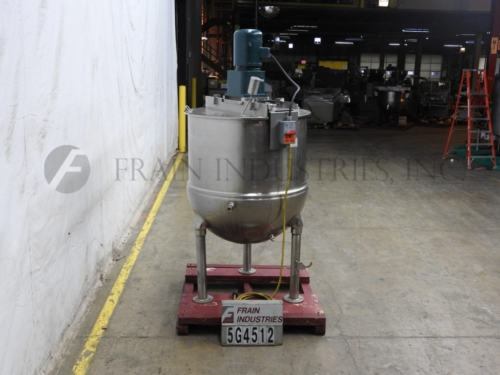 返回所有设备Groen 250加仑316不锈钢夹套水壶。容器尺寸:44"内径,25"直壁和25"深球形底部。采用1-1/2"宽聚刮刀,中心桥架安装刮刮搅拌装置。两个桥式安装侧挡板,2"和3"斜面座进口端口,温度探头,2件可拆卸翻转顶部盖与升降机手柄(一边与2"和3/4"斜面座端口,一边与6"和3-1/2"检查孔)。1-1/4"FNPT外套进/出端口。3-1/4“身份证中心底部三夹出口,20-3/4”离地间隙。安装在(3)26英寸高管状腿上。