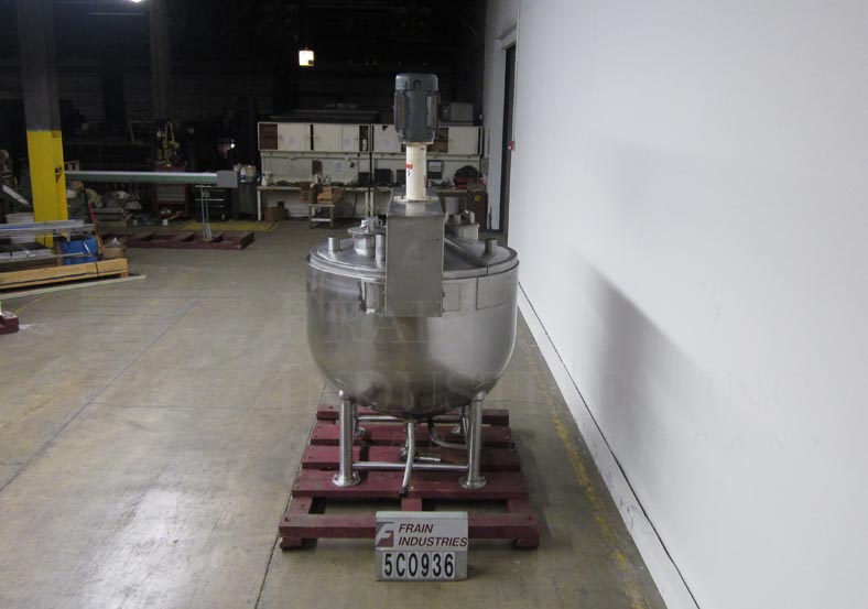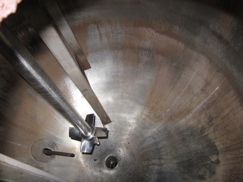 不锈钢300加仑铬铁搅拌釜,单支柱搅拌。水壶测量54"内径x 48"深与3"中心底部出口。