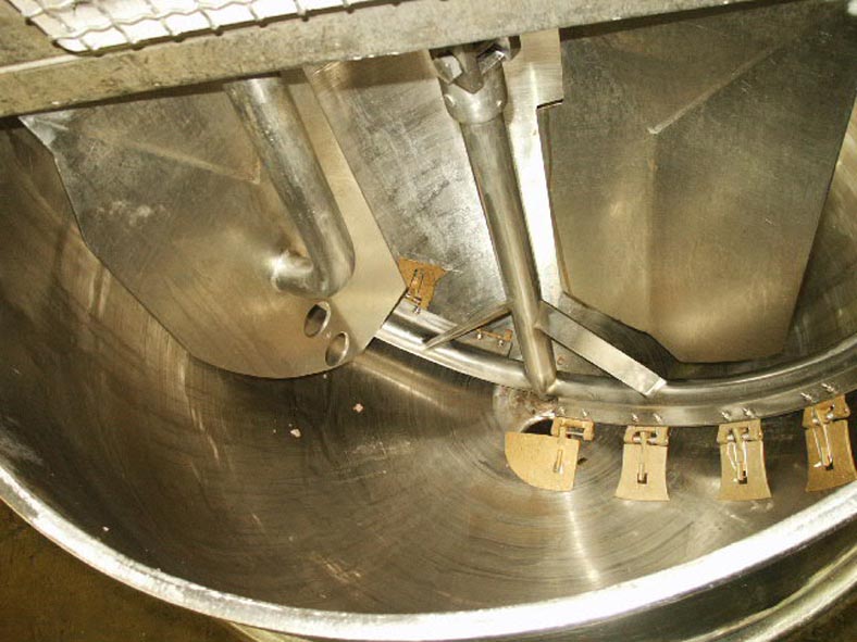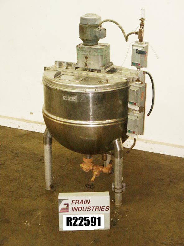 返回所有设备150加仑304不锈钢1/2夹套水壶,最大工作压力为125 psi @ 353'f.41“(Dia)x 32”深度。配有双重翻盖盖,锚固式搅拌与侧底刮板,3 1/2“(直径)放电,带有斯波特阀,16”排放高度,1 1/2“(Dia)夹克排放和19558号国内板号。单位安装在(3)不锈钢臀部腿上,最后用来混合糖果产品。