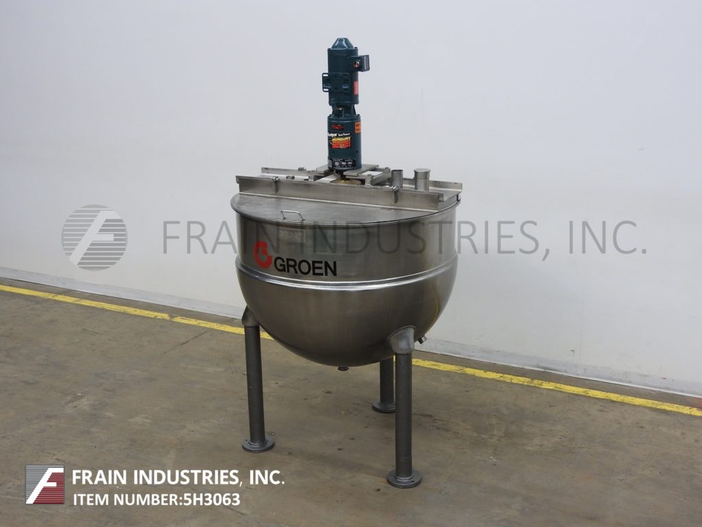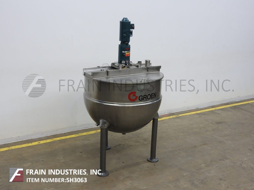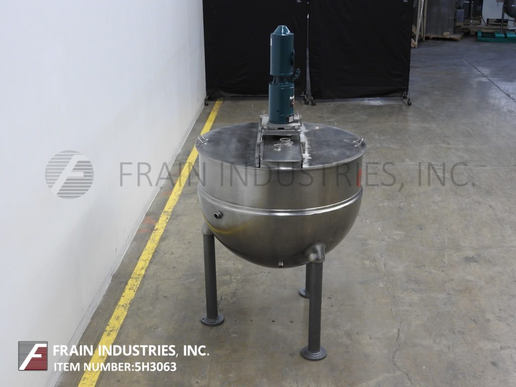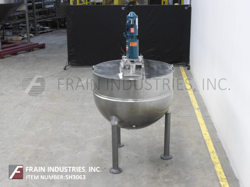返回所有设备格莱恩,型号RA200SP,316不锈钢套锅。容器尺寸:48" 直径×35" 深与12" 。直壁配备有桥安装刮搅拌器和双固定挡板球形底部与2.5。“ OD / 2" ID三夹式中心底部排出安装在(。3)管状腿框架。