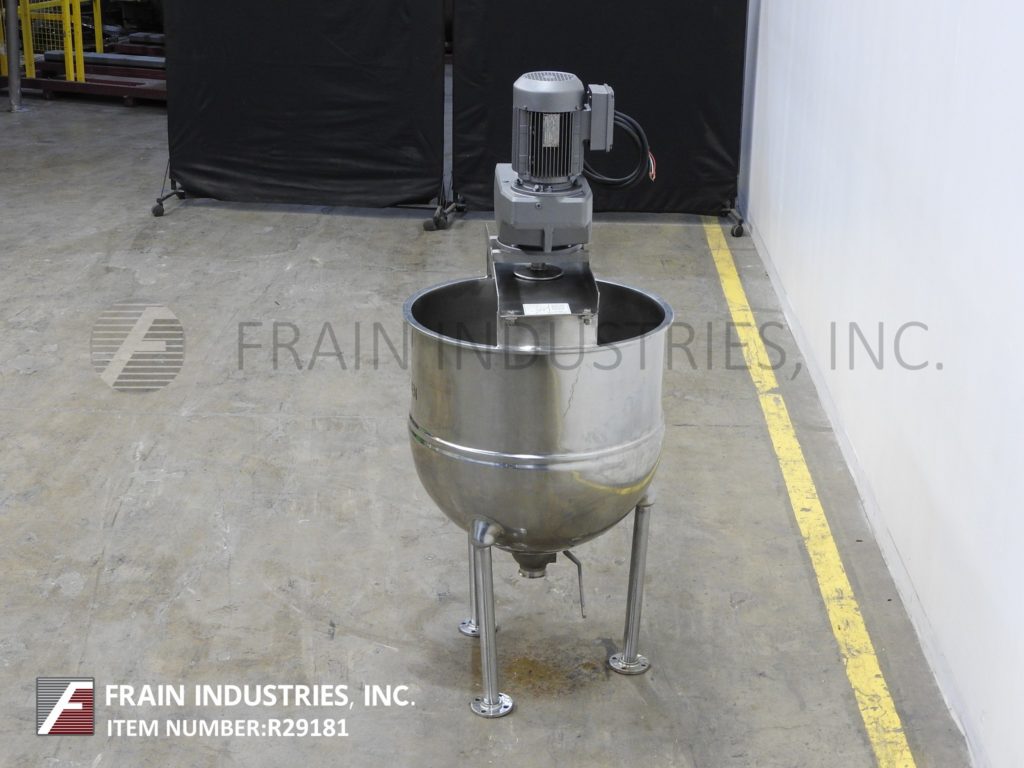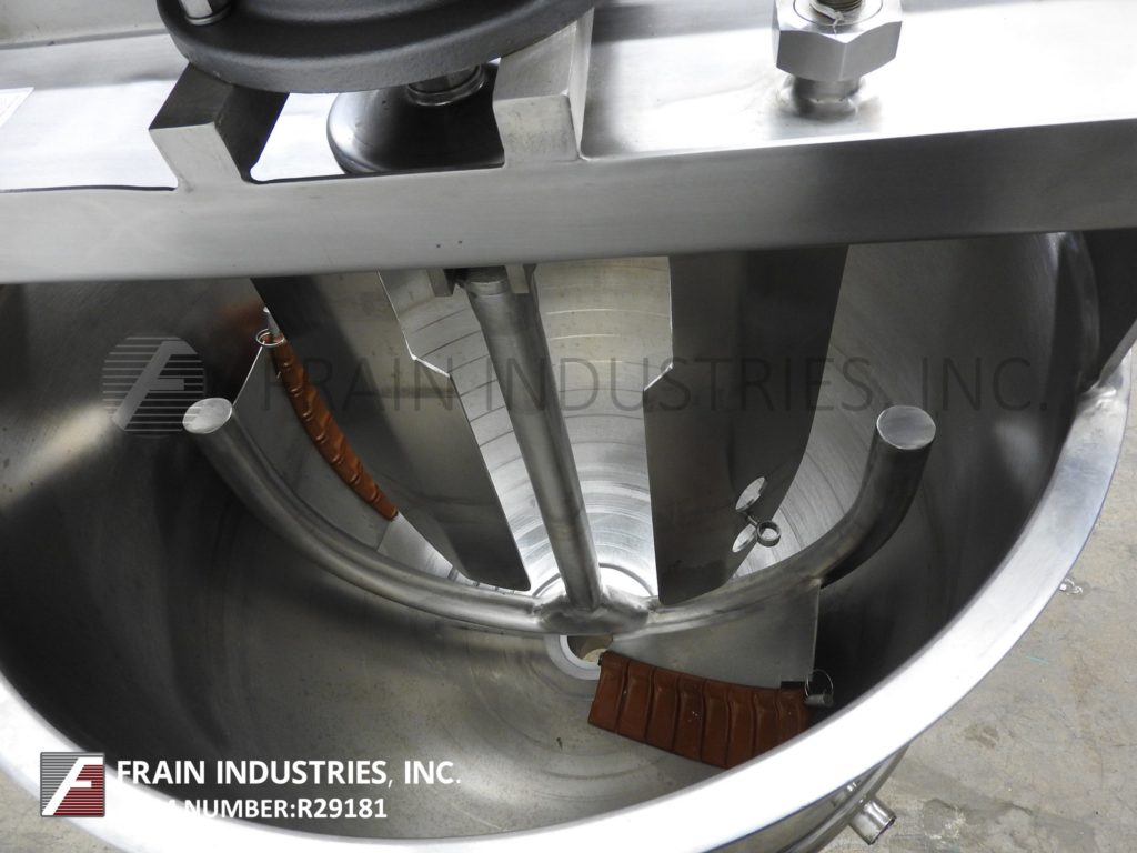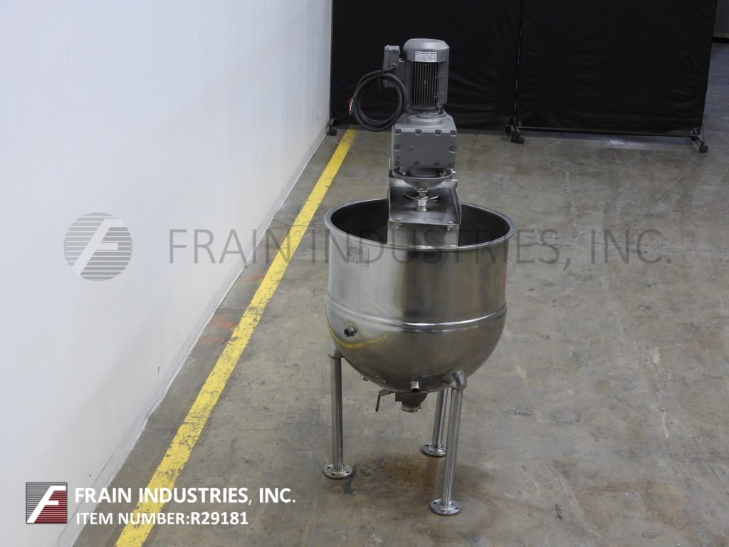 返回所有设备呻吟,60加仑,304不锈钢夹套水壶。船舶尺寸:30“直径x 27”,深度为14英寸的直墙。配备桥接式刮膜,由单个3 HP驱动器,(2)固定挡板和3½“OD / 3”ID Tri-Clamp风格放电球阀和13“地间隙。安装在(3)管状腿部框架上。