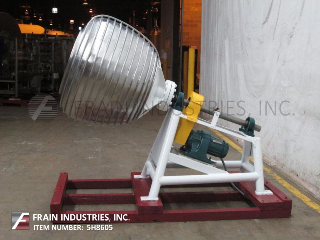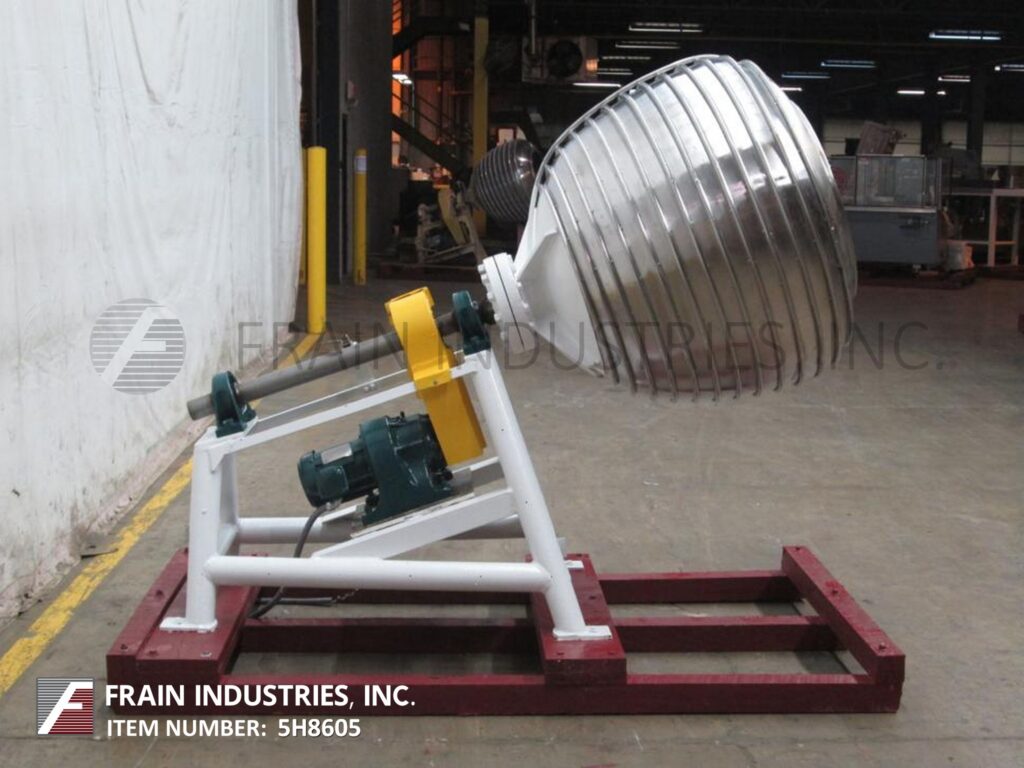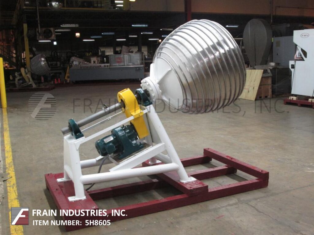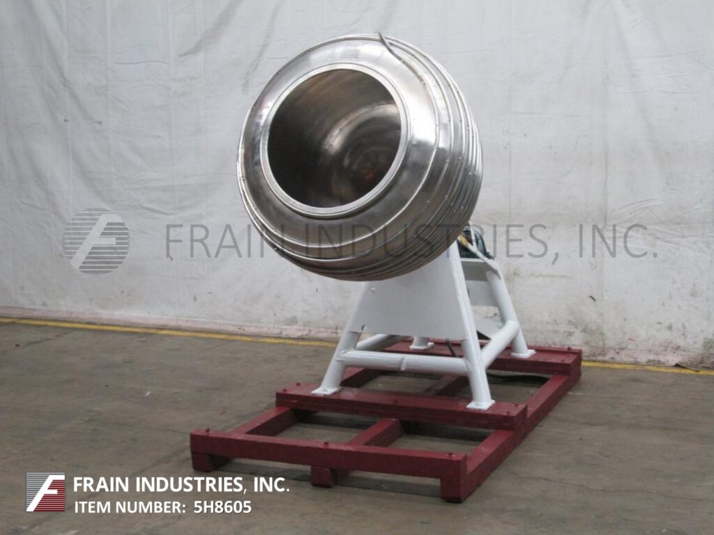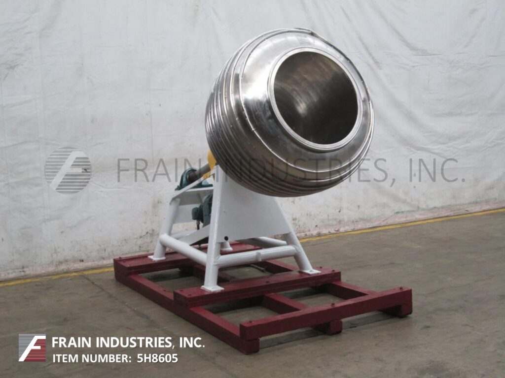 Back to All EquipmentGroen, Model Rev.Pan, stainless steel pear shaped coating pan with working volumes per hour – dependiong on materials and application. Equipped with a 42" diameter x 36" deep coating bowl, 24" diameter product access port and heating coil. Mounted on painted base frame and powered by a 1 Hp drive.
