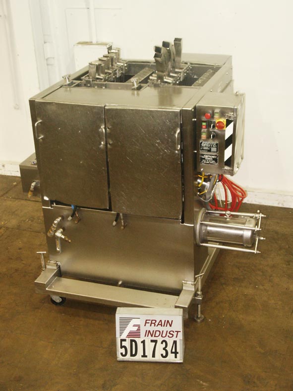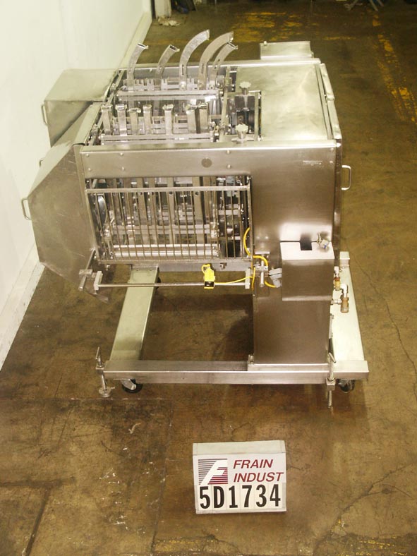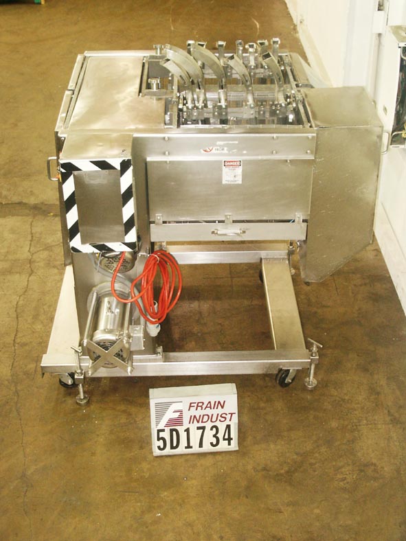 返回所有设备两个头部SS洗涤单位。每分钟每分钟120冲程。标称5 1/2“行程和22”的分切区。最无骨/非冷冻肉,鱼,家禽,奶酪,面包产品,水果和蔬菜可以切成薄片。具有所有S / S冲洗电动机,用于驱动嵌轨,切割带锯,加氢驱动的切割作用。最后用于美国农业部食品运作切片火腿和奶酪为鸡基辅。