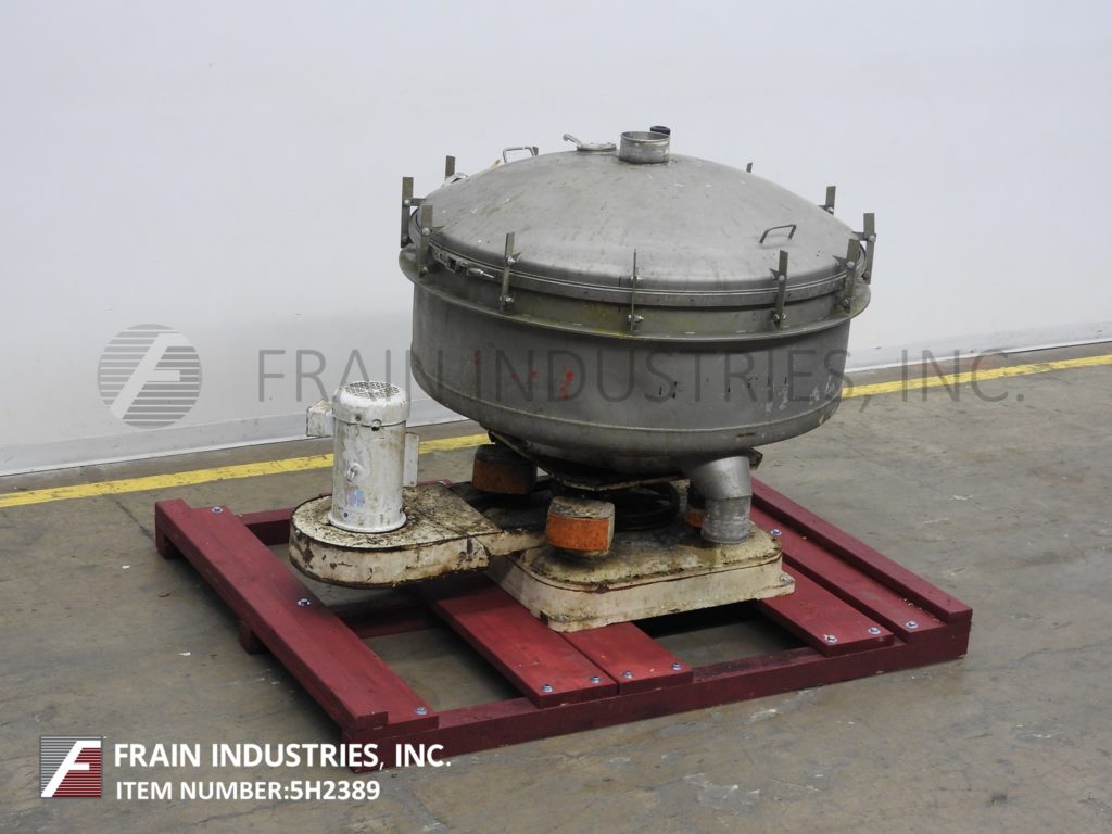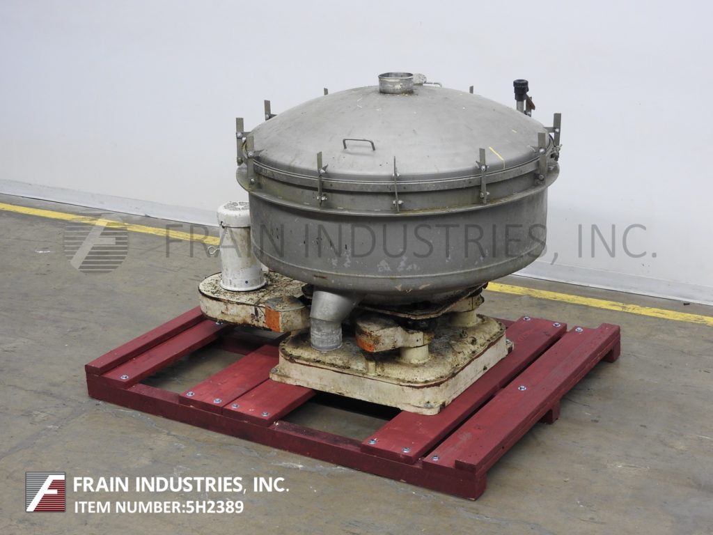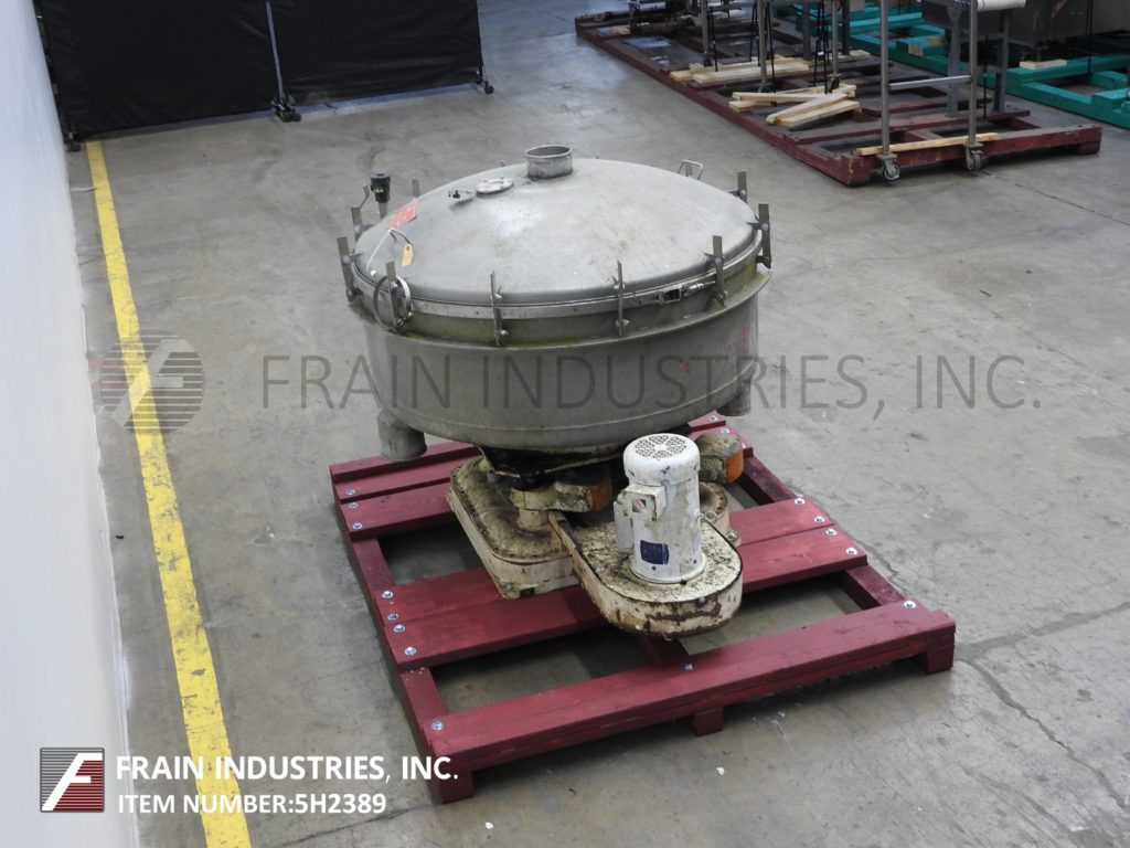 阿甘,型号CP-43,直径48",不锈钢,内联筛/筛网。工作压力:13psig。配备一个6英寸的顶部中心进口,螺栓下盖,压力释放阀,(3)自洁筛和(2)6英寸直径的侧底排放。