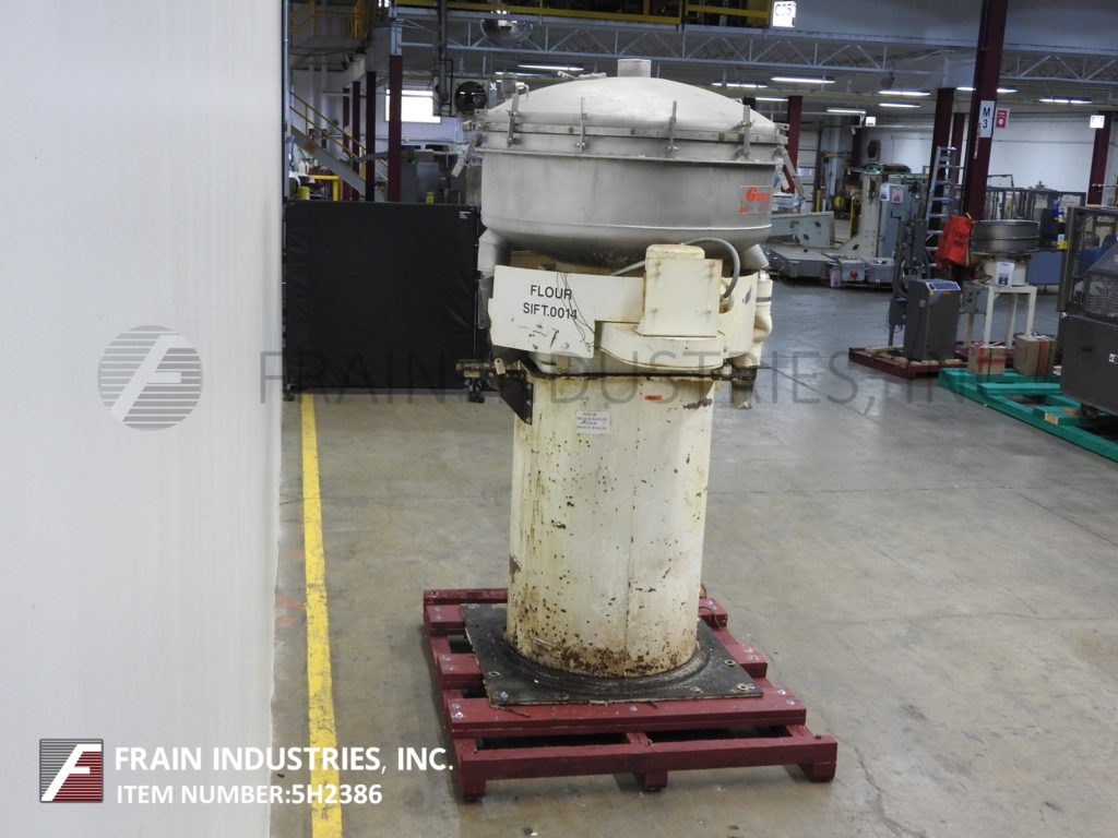 阿甘,型号CP-43,直径48",不锈钢,内联筛/筛网。工作压力:13psig。配备一个6英寸的顶部中心进口,螺栓下盖,压力释放阀,(3)自洁筛和(2)6英寸直径的侧底排放。安装在一个56英寸高的底座风格。