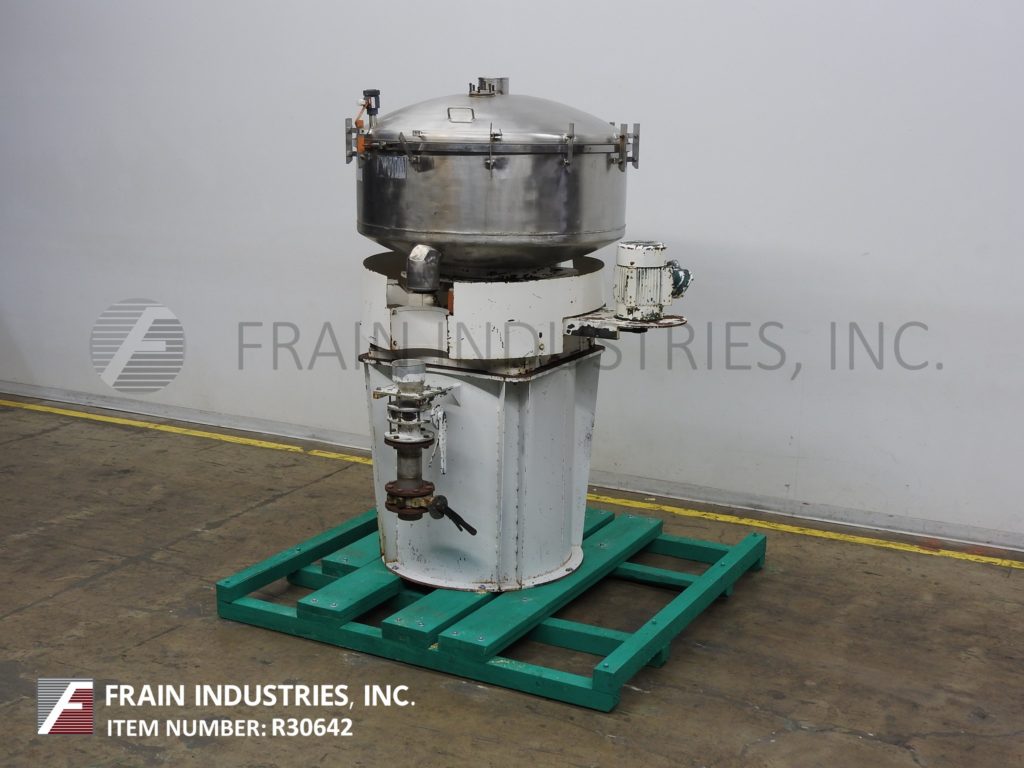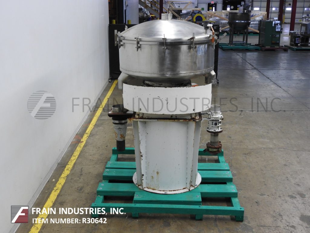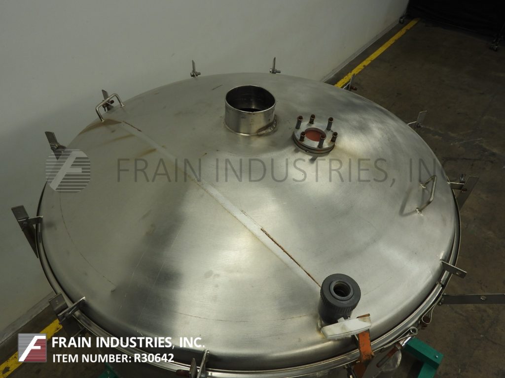 Gump,Model CP-43,48“直径,不锈钢,内联系筛/筛分。操作压力:13 PSIG。配备6”顶部中心入口,螺栓向下盖,压力释放阀,(3)自清洁屏幕和(2)6“直径侧底排放。
