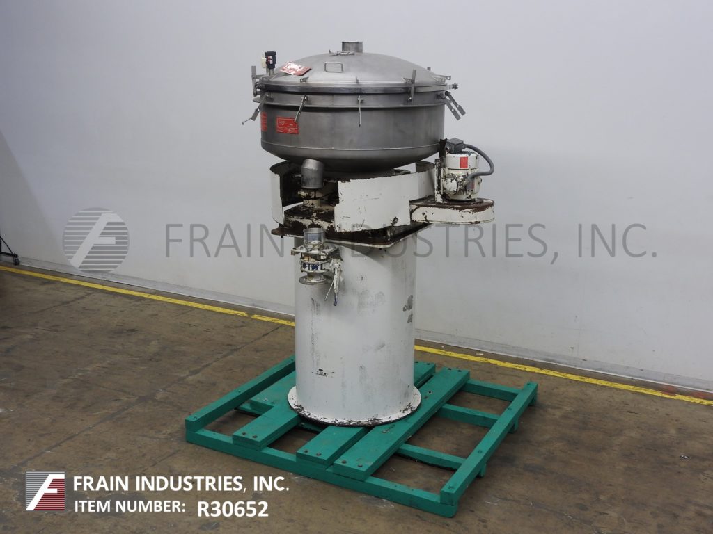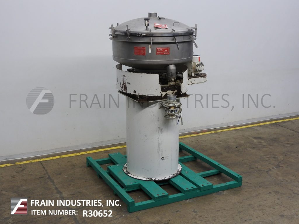 Gump,Model CP-43,48“直径,不锈钢,内联系筛/筛分。操作压力:13 PSIG。配备6”顶部中心入口,螺栓向下盖,压力释放阀,(3)自清洁屏幕和(2)6“直径侧底排放。