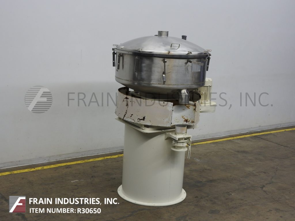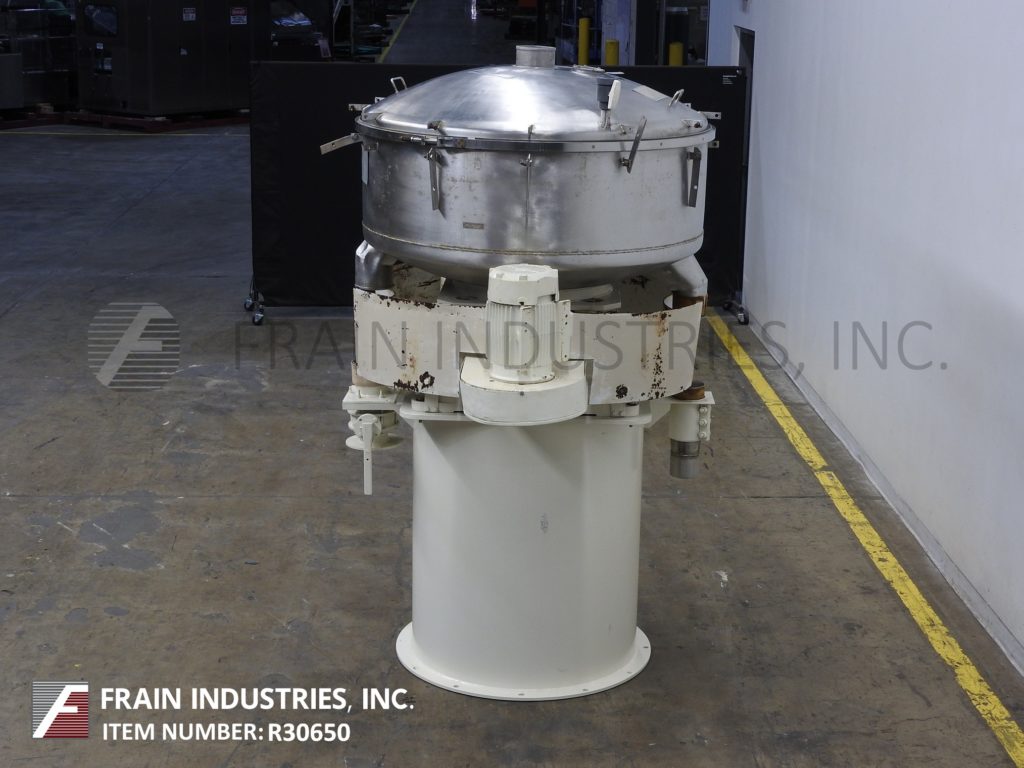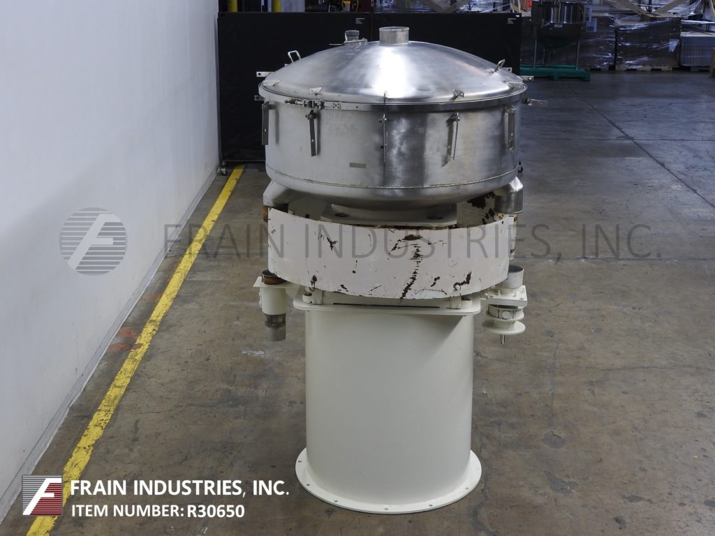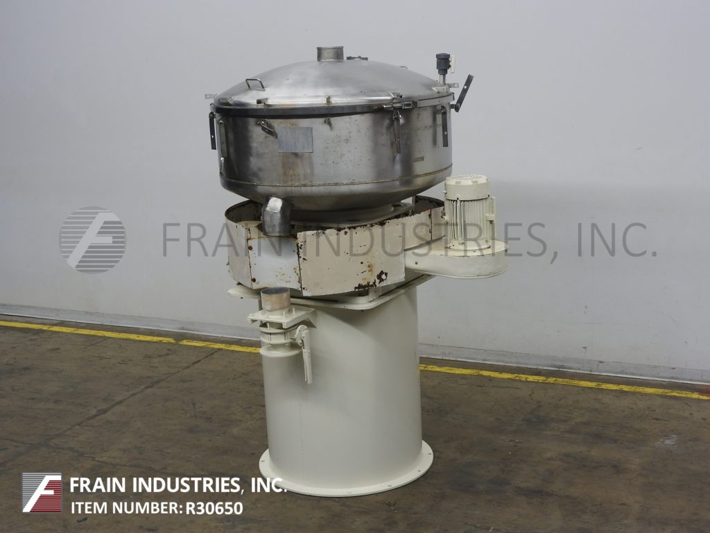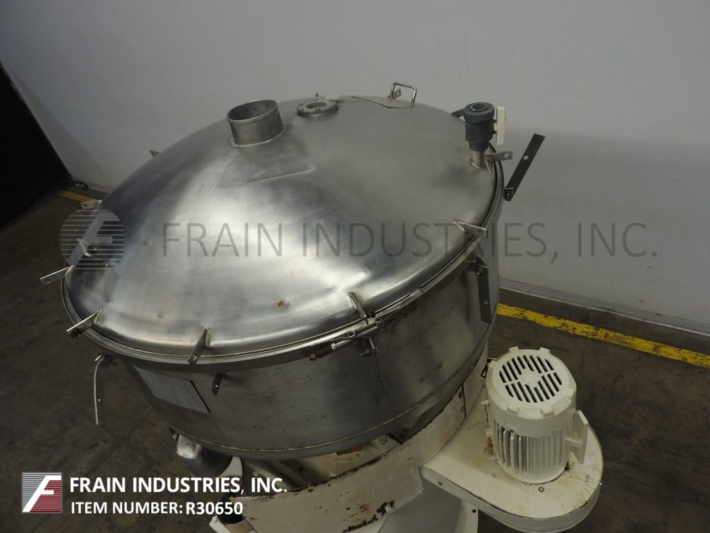 Gump,Model CP-43,48“直径,不锈钢,内联系筛/筛分。操作压力:13 PSIG。配备6”顶部中心入口,螺栓向下盖,压力释放阀,(3)自清洁屏幕和(2)6“直径侧底排放。安装在基座基座上。