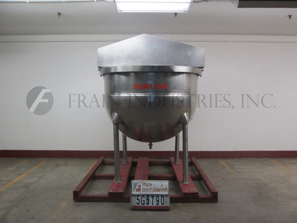 返回所有设备汉米尔顿,500加仑,316不锈钢夹套搅拌釜。搅拌碗的直径为67英寸,底部为半球形,总深度为47英寸。配备双升降顶部盖,桥安装3马力刮和3马力反向旋转搅拌。底部具有(1)2½”外径/1¾”ID阀座斜面螺纹式中心底部卸料,带有90°弯头和15”地面间隙。单元安装在(4)不锈钢支架上。
