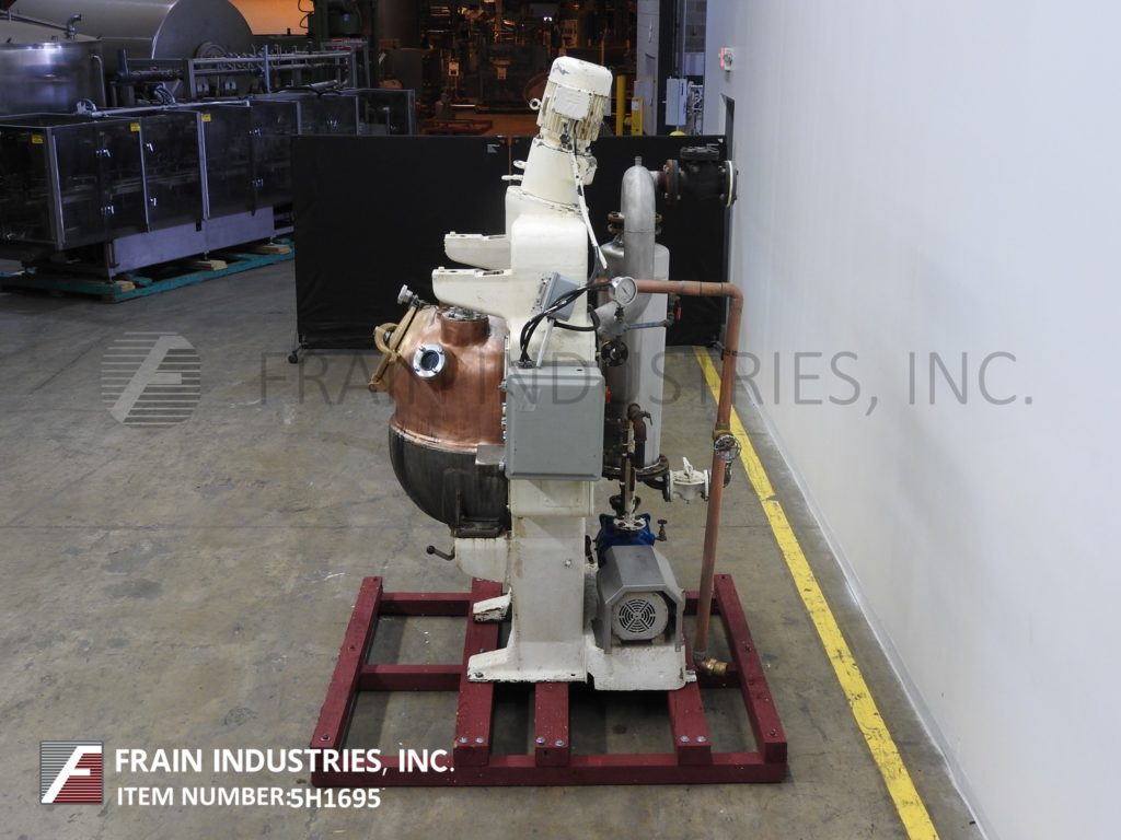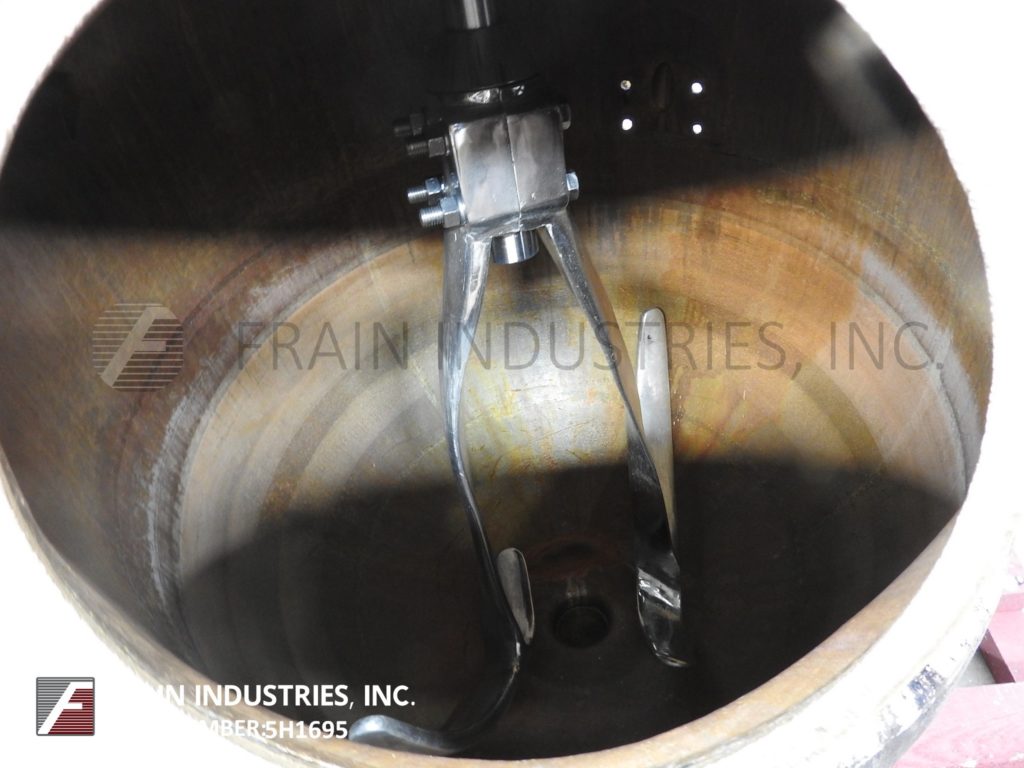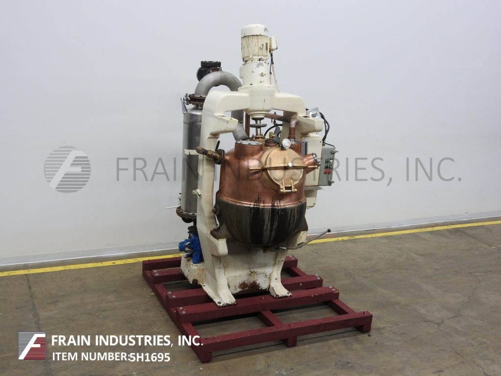 返回所有设备regarten,60加仑,铜,单次运动,真空水壶。血管尺寸:32“直径; 24”深度。配备圆顶顶部,12½“直径的通道,扫描搅拌,由两种速度5 HP驱动器,Thermowell,2¾”ID镜头,顶灯,5HP真空系统和2¾“直径底部放电,手动滑动阀和22”接地清除。控制面板带按钮开始/停止搅拌和真空泵。