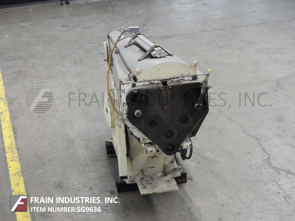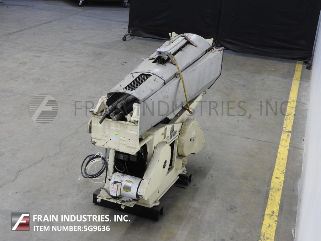 返回所有设备汉氏素,型号19h,批量糖果扭曲前。额定最大75公斤(165磅)批次。配备(4)不锈钢圆锥形,罗纹和蒸汽加热产品滚筒,测量72“长,(2)6”Dia和(2)9“在底部底座,所有1½”直接。用于从糖批量形成绳索。4个锥形辊以这样的方式布置,使得糖批次,有或没有中心,条纹或平原,拉动或普通的方式形成为均匀的锥形,其中非扣除的产品尺寸连续减小,直到它达到所需的厚度在排放端。