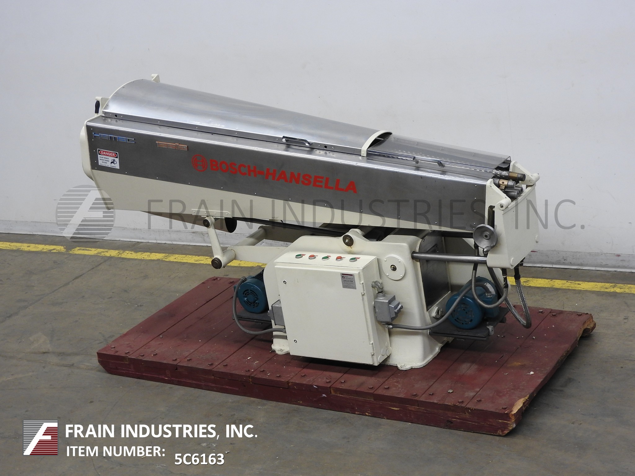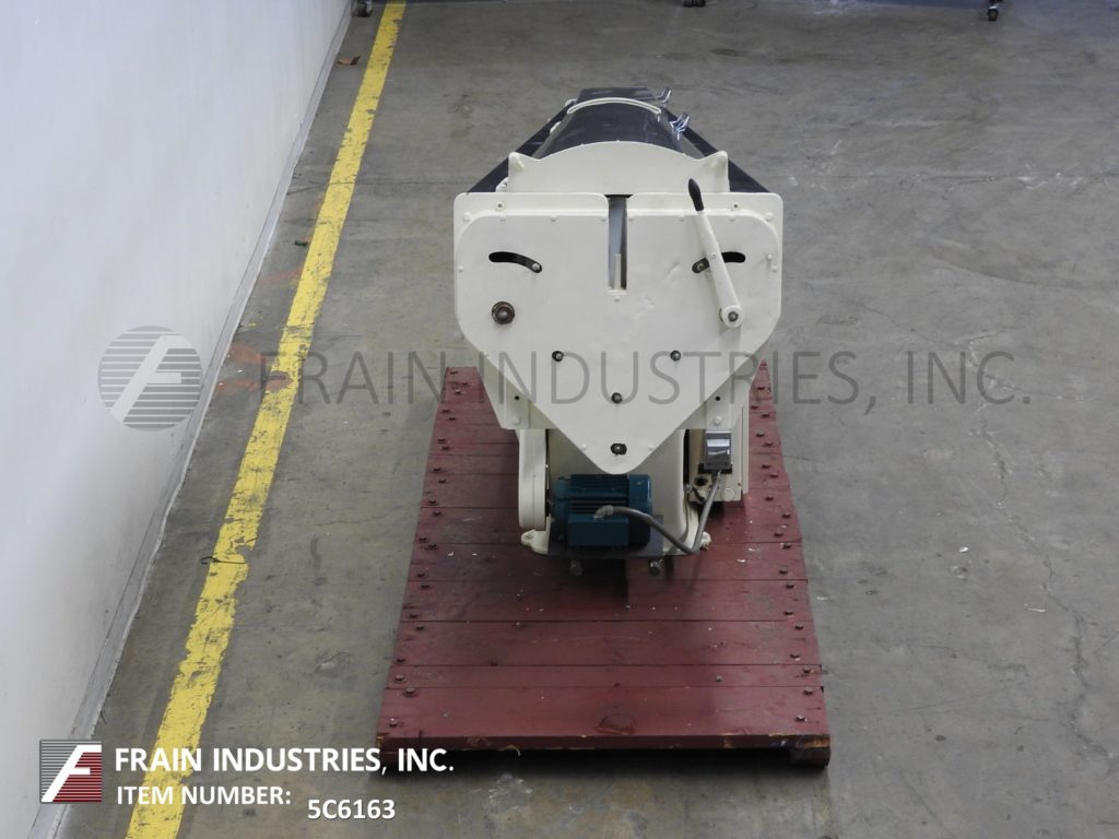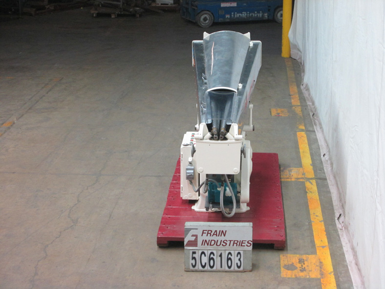 返回所有设备批量糖果扭曲前额定最大75公斤,或165磅批次。配备了(4)不锈钢圆锥,肋和加热产品辊长84",(2)6"直径和(2)9"直径的基地和,所有1 1/2"直径在尖端。滚轮每小时消耗40磅蒸汽,150 psi和1/2"直径连接,具有翻转式腔盖和1 3/8"的排出绳出口。用来形成一根绳子从糖批,4锥辊被安排在这样一种方式,糖批,有或没有中心,条纹或平原,还是普通,甚至形成一个锥形的unpulled产品不断缩小,直到达到所需的厚度在放电结束。