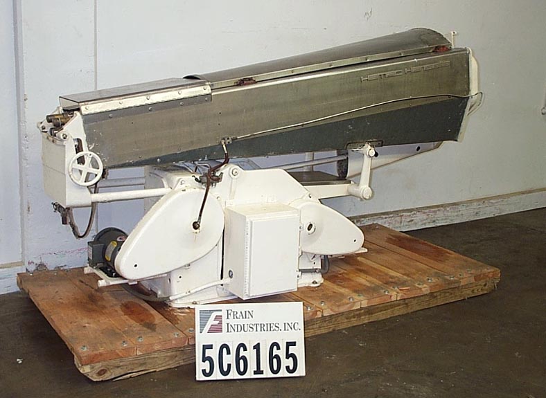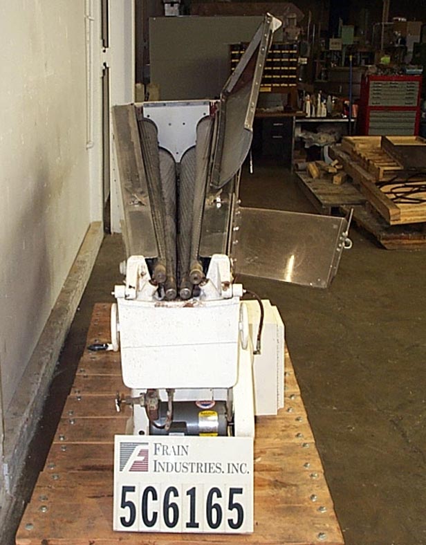 返回所有设备批量糖果扭曲前额定最大75公斤,或165磅批次。有(4)S/S锥形,肋和蒸汽加热产品辊长84",(2)6"直径和(2)9"直径的基础,所有1 1/2"直径在尖端。滚轮每小时消耗40磅蒸汽,150 psi和1/2"直径连接,具有翻转式腔盖和1 3/8"的排出绳出口。用来形成一根绳子从糖批,4锥辊被安排在这样一种方式,糖批,有或没有中心,条纹或平原,还是普通,甚至形成一个锥形的unpulled产品不断缩小,直到达到所需的厚度在放电结束。