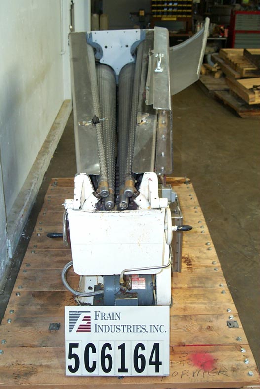 返回所有设备批量糖果扭曲前额定到75千克的最大值,或165磅批次。有(4)S / S圆锥形,罗纹,蒸汽加热产品滚筒,测量84“长,(2)6”DIA和(2)9“在底部的所有1 1/2”DIA。滚筒的消耗量为40磅@小时蒸汽,带150 psi和1/2“的直接连接,具有翻转室盖,以及1 3/8的排出绳出口。用于从糖批料中形成绳索,4个锥形辊以这样的方式布置,使得糖批次,有或没有中心,条纹或平纹,拉动或普通,形成为均匀的锥形,其中不扣除的产品是连续的减小尺寸,直到它达到排出端的所需厚度。