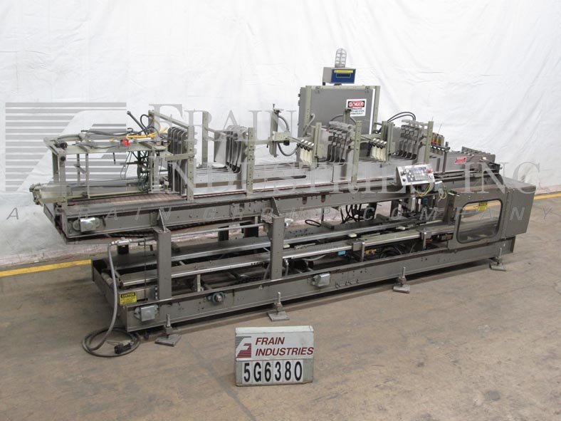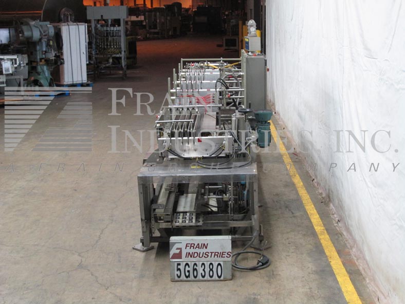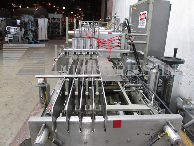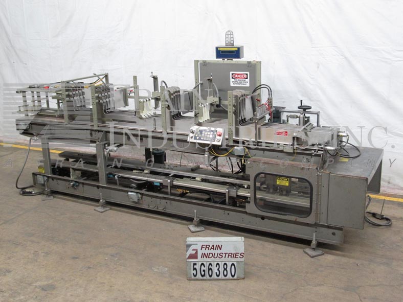 返回所有设备哈特尼特825型,自动,落箱包装机额定从10到35箱每分钟集装箱数量-取决于材料和应用。外壳尺寸范围:6"至24"长度;宽度6"至16";身高1-1/2英寸到6英寸。容器大小范围从2盎司到2-1/2加仑的玻璃,塑料,罐头,圆形容器和各种形状和尺寸,可以处理HSC, RSC,托盘和展示托盘(有适当的更换部件)。配备(3)6“宽x 140”长缩醛树脂产品在进料输送机可调车道分隔器,容器停止,(2)下部4“宽x 70”长在饲料输送机抑制饲料通过产品滴水面积与提升产品软网格情况下改变应用程序每一部分。控制面板有触摸板控制,数字读出和统计灯。安装在重型基础框架与水平腿。
