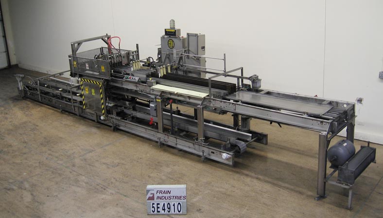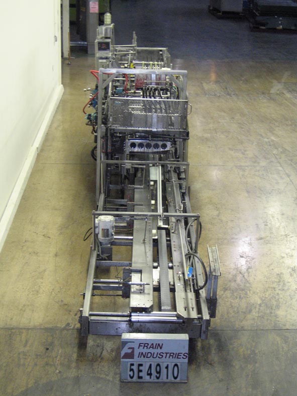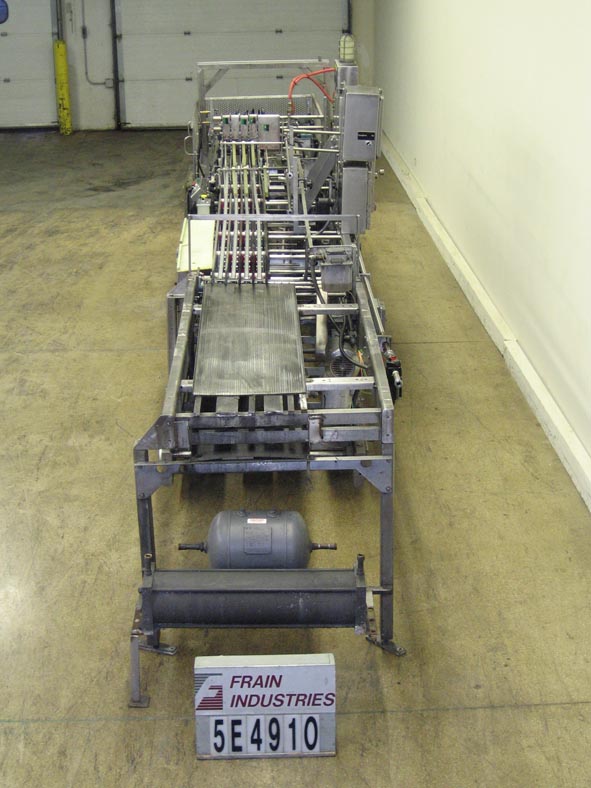 返回所有设备Hartness 900型,自动,下降caser封隔器额定从5到30箱每分钟与容器的数量-取决于材料和应用情况下,案例大小范围:6“至24”长x 6“至16”宽x 1-1/2“至19”高。配备6 '长x 18-1/2"宽的产品在进料输送机,该进料到13 '长x 24"宽的产品laner目前设置(4)车道4"宽每条,与空气刀片集装箱处理。11 '长x 6-1/2"宽空箱输送机与自下而上的箱升降机,30"长x 16"宽网格区域,目前设置为3 x 4模式。控制板设有Hartness控制器,配有操作人员启动、停止控制器、中央润滑系统和气动阀组。安装在重型底座上。