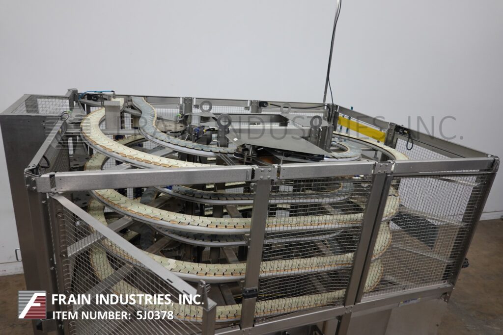 Back to All EquipmentHartness, Model 6400, DYNAC pressureless accumulation conveyor. Equipped with 4" wide table top conveyors with a 42" infeed and discharge height, 4 tier spiral and AB controller with touch screen HMI.