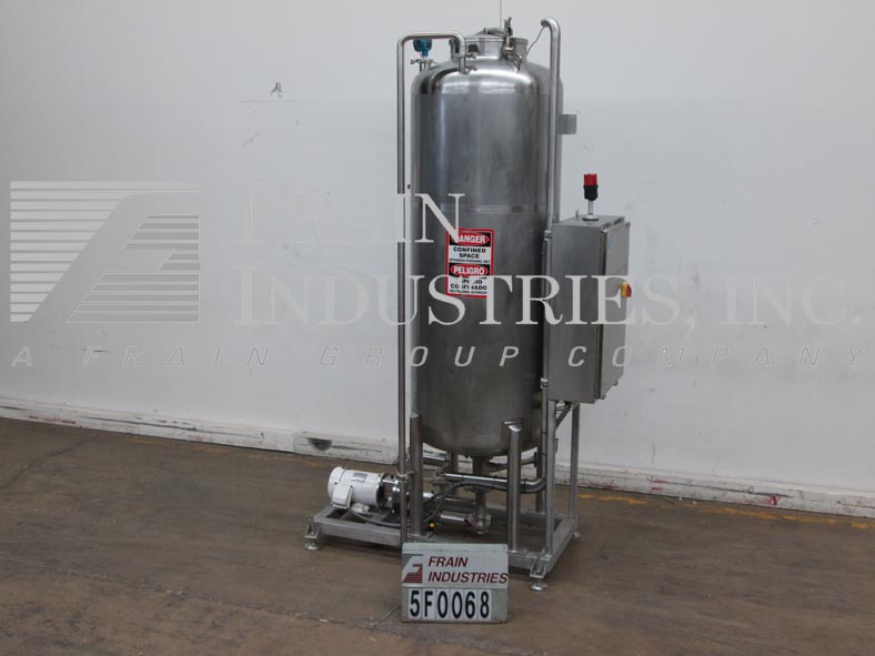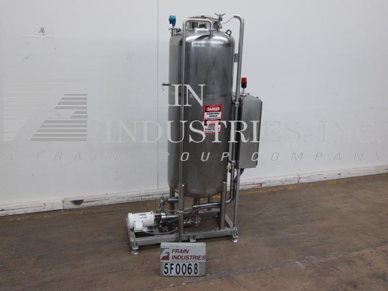 返回所有设备Haselden公司的糖浆回收系统模型SRS-B。油箱尺寸:32英寸直径;69年“直墙。配备圆顶顶部,18"直径端口,2"卫生入口,2-1/2"卫生侧排放,35"净空,碟形底部中心排放,3"卫生出口,4"净空,2"卫生端口,(2)气动蝶阀和控制面板。安装在不锈钢框架上。