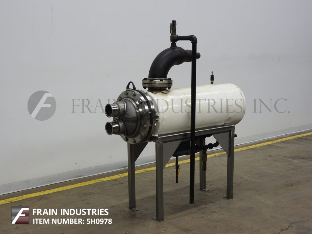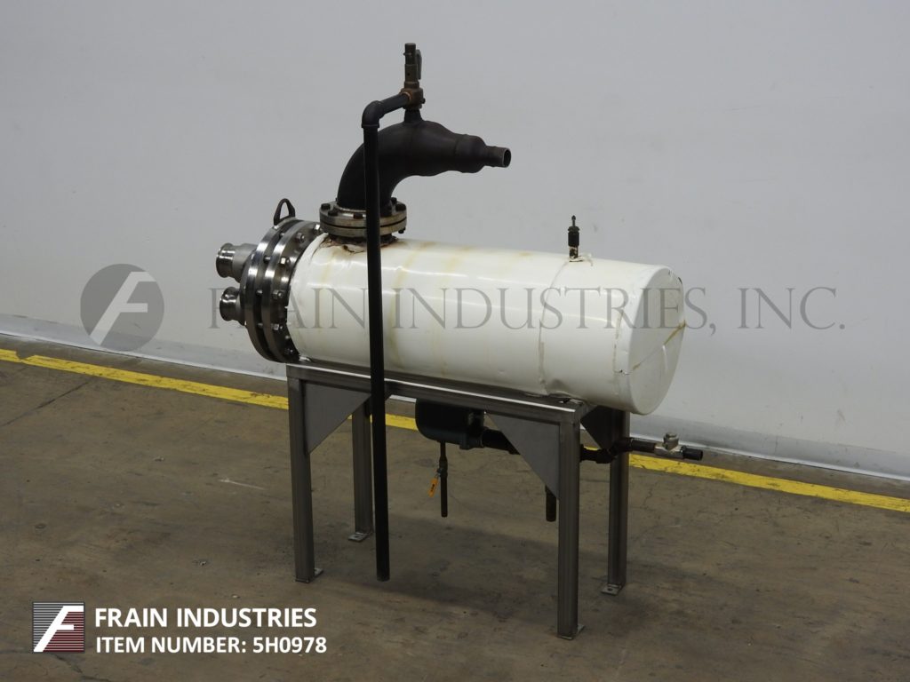 返回所有设备CEMLINE,型号1248A-SP,89英尺24英尺的壳体热交换器。配备(2)2“NPT媒体入口/插座,减压阀和(2)4¾”OD / 4“ID Tri-Clamp风格的产品入口/插座。安装在(4)腿框架上。