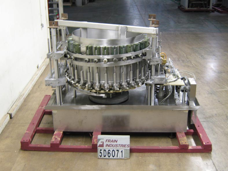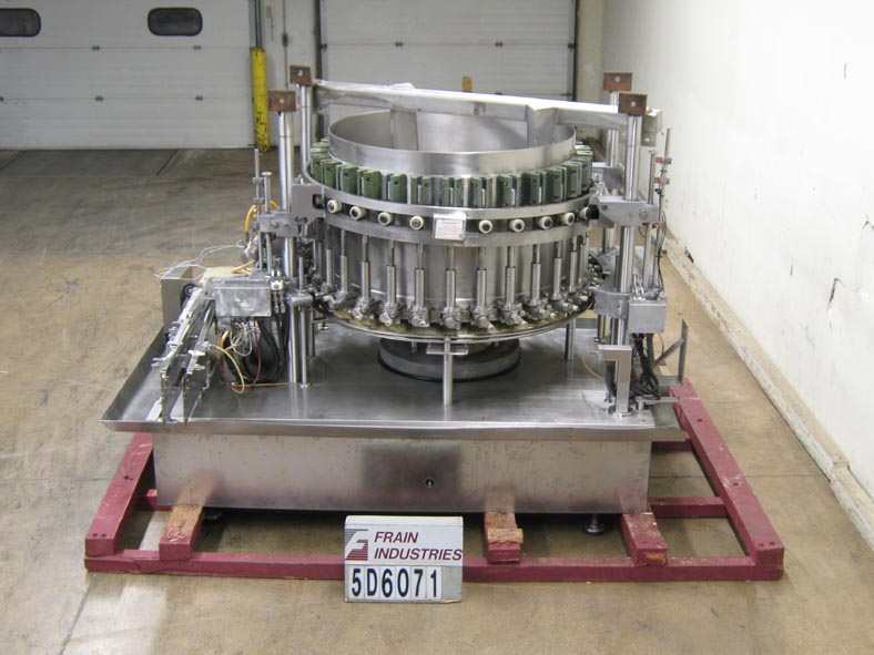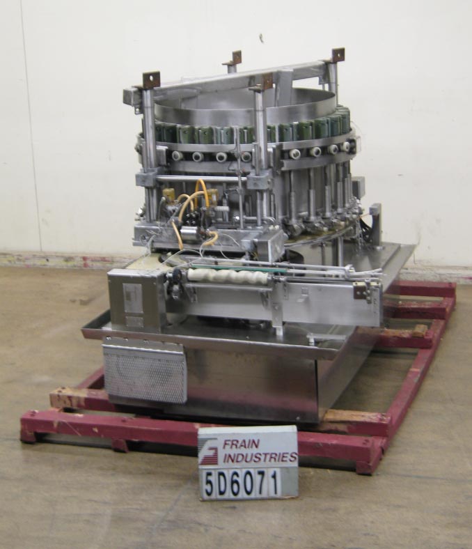 返回所有设备自动,连续运动,S / S,30头旋转填料,能够速度为500 cpm(取决于产品)。有9.5盎司活塞设置在5 3/4“中心W / Drum阀(用于重型颗粒)和1/2”ID喷嘴。配备定时螺丝到星轮挡板进给,星转灯放电,无罐/无填充,以及填充尺寸的手工调整。安装在温和的钢框架上。最后运行2 1/2“Dia。X 3”(H)容器。