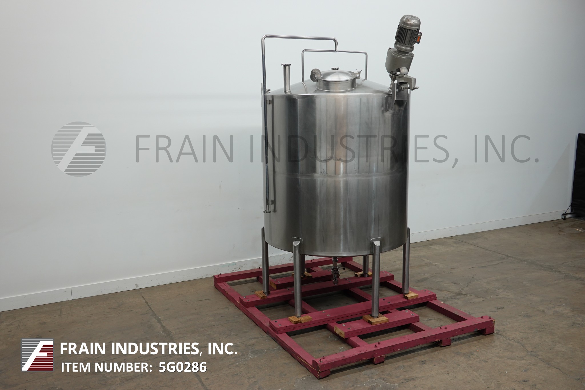 返回所有设备高地模型1300加仑,316不锈钢,单壁搅拌罐。船舶尺寸:72“ID x 74”直墙。圆顶顶部,拥有前18英寸的ID Manway,配有翻转螺栓盖板,顶侧安装的闪电样式道具搅拌(1)2“(1)3”OD卫生顶级端口和(1)3“OD通风口。锥形底部有2-1 / 2“OD卫生地区底部放电,蝶阀和7”底板清洁安装在(4)不锈钢臀部插座腿上。