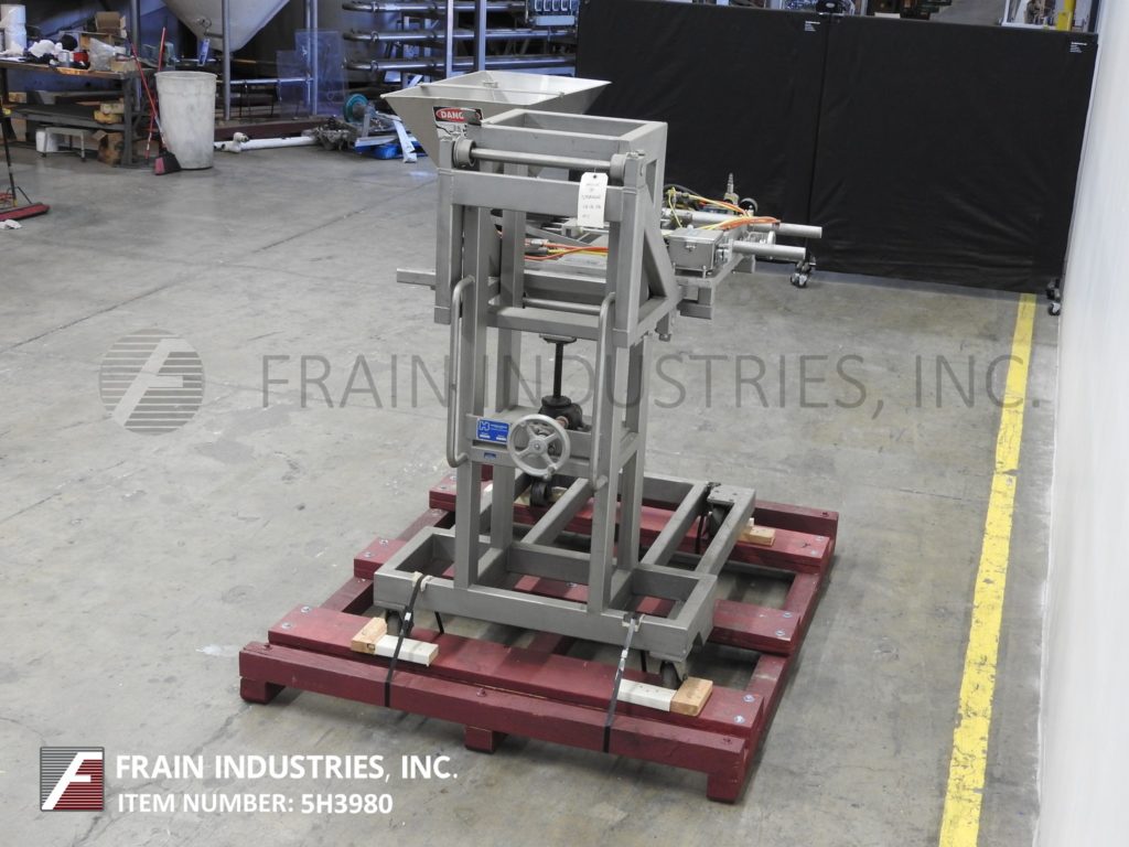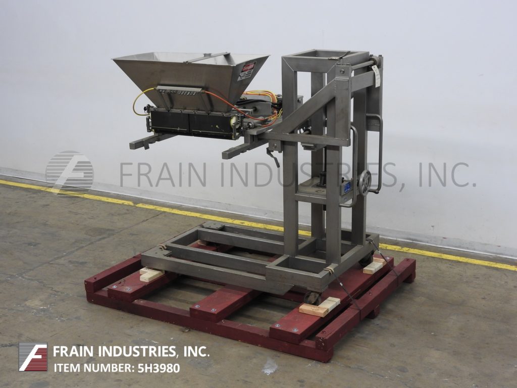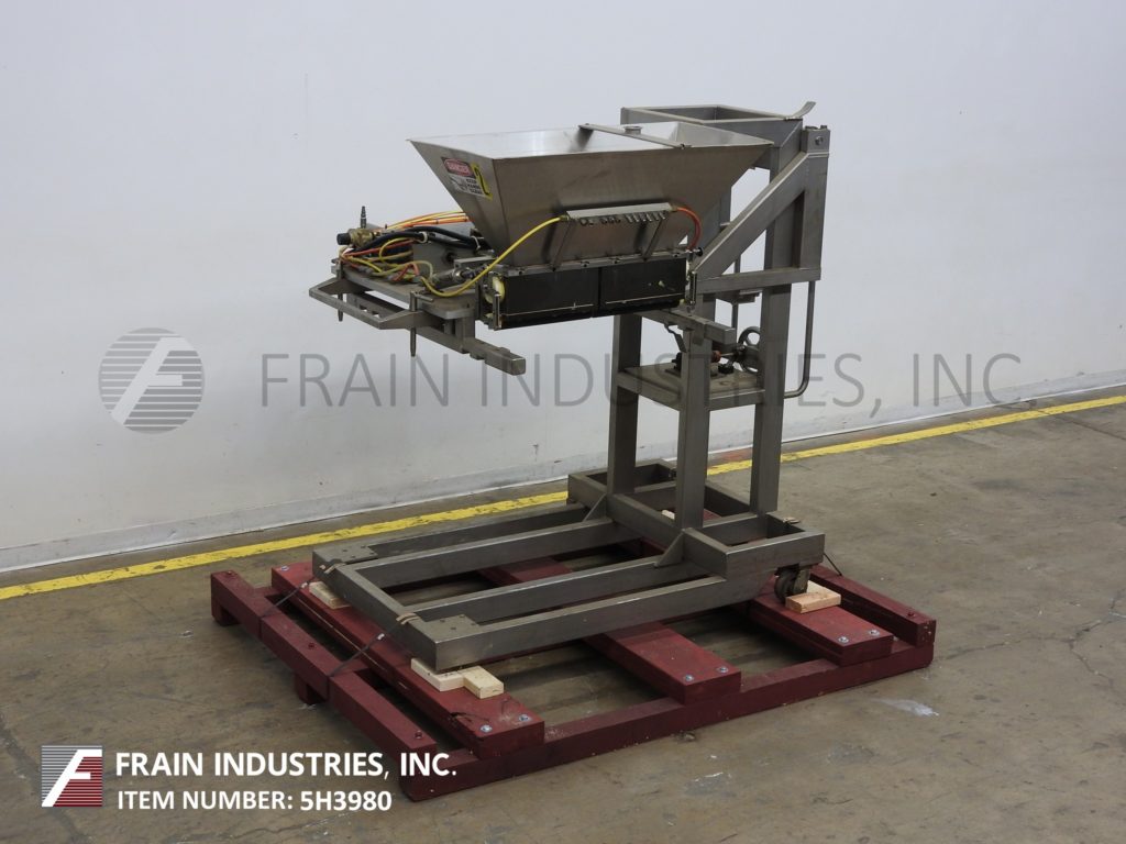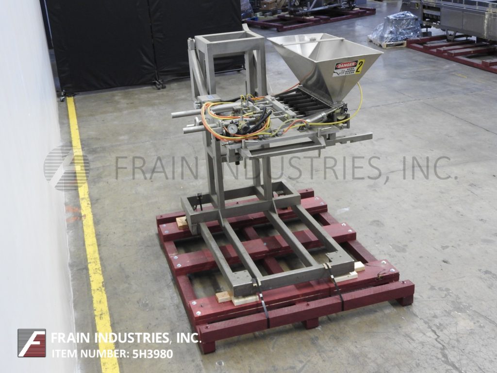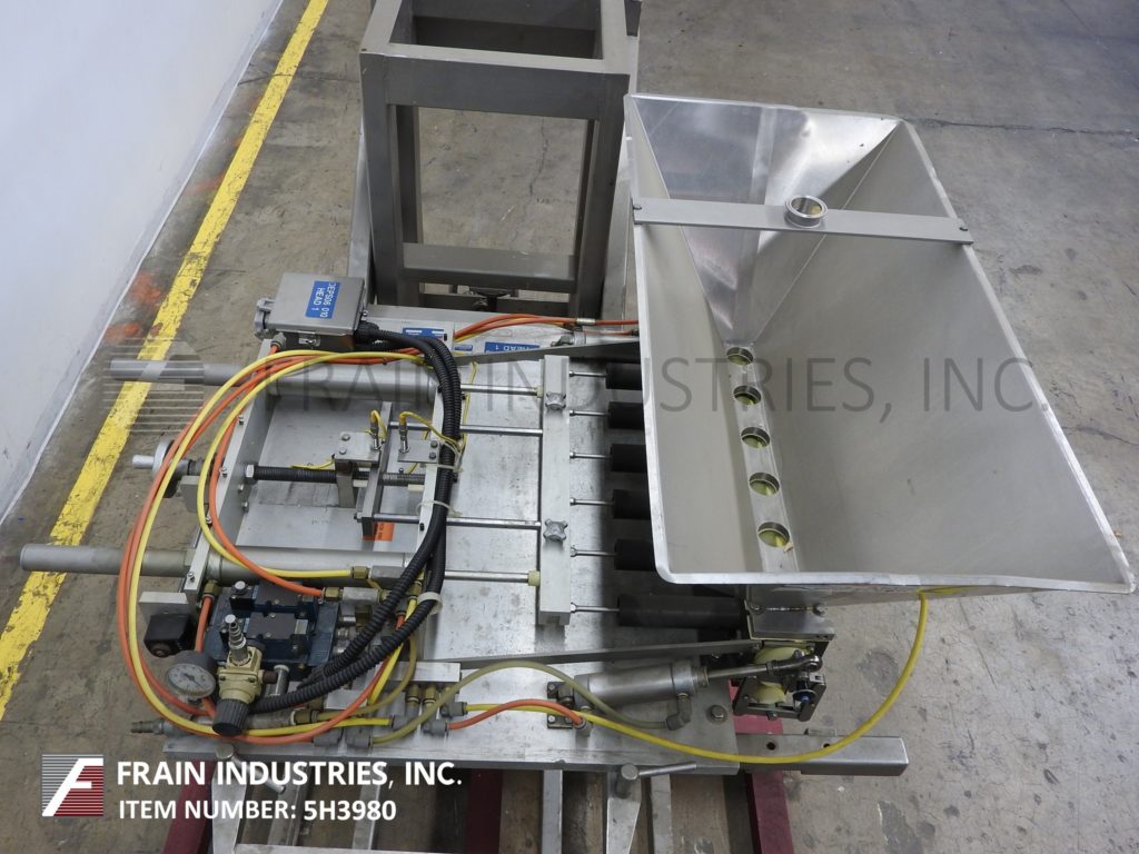 返回所有设备后挡板,6P-08型,自动,6头,气动活塞填料。尺寸范围:1盎司到8盎司,配有适当的更换部件,配备41"长x 19"宽x 15"深不锈钢产品料斗(6)1¾" ID x 7"长的空气辅助活塞,带有旋转关闭气动包和e-stop。安装在带有脚轮的H型底座上。