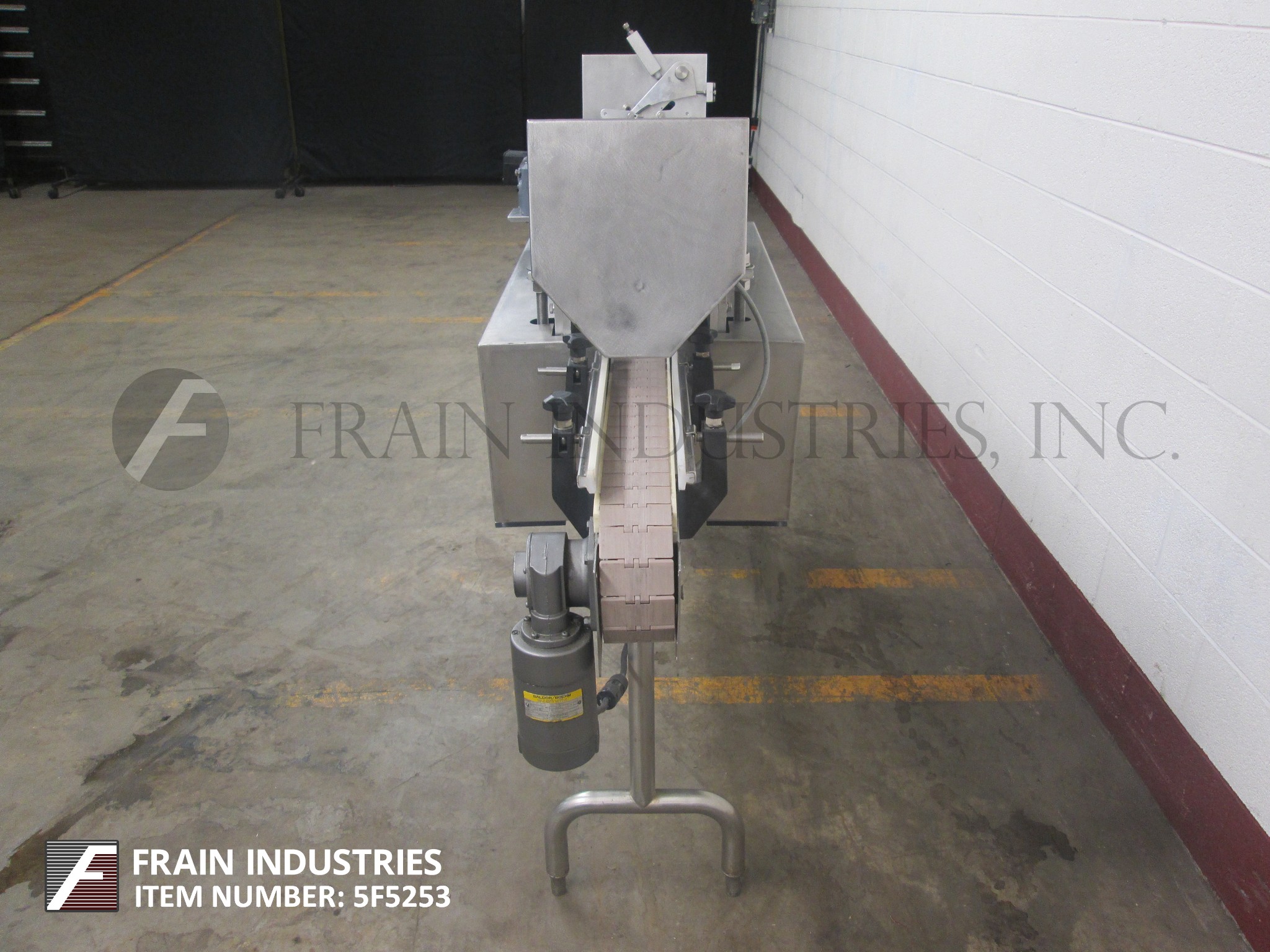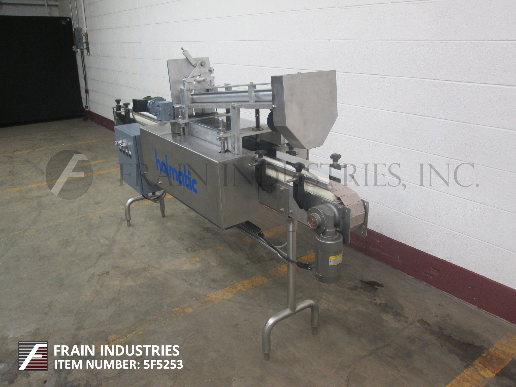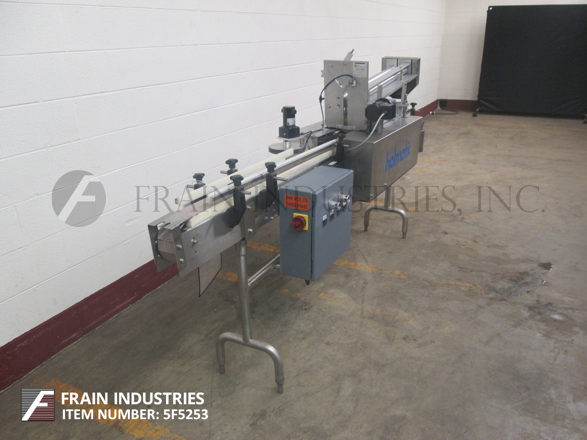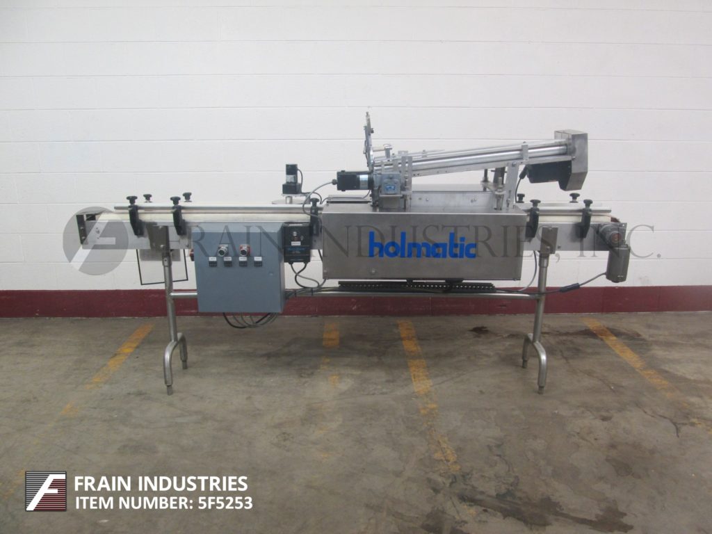 返回所有设备Holmatic型号PH-41C,自动,盖子涂抹器额定从60到150个容器每分钟-速度取决于材料和应用。配有36“长盖杂志,132”长x 3 - 12“宽容器输送机(需要带)和28“长双侧带协助,没有容器/没有盖子,启动/停止按钮,变化速度与快速拨号控制,安装在腿(4)基本框架和可以应用注塑自动接入金属或纤维罐盖子。