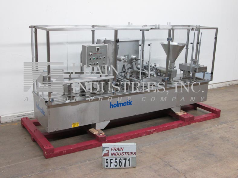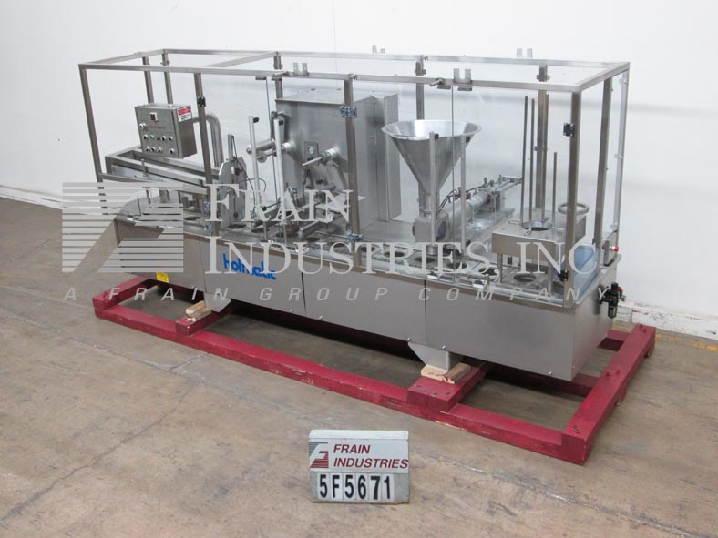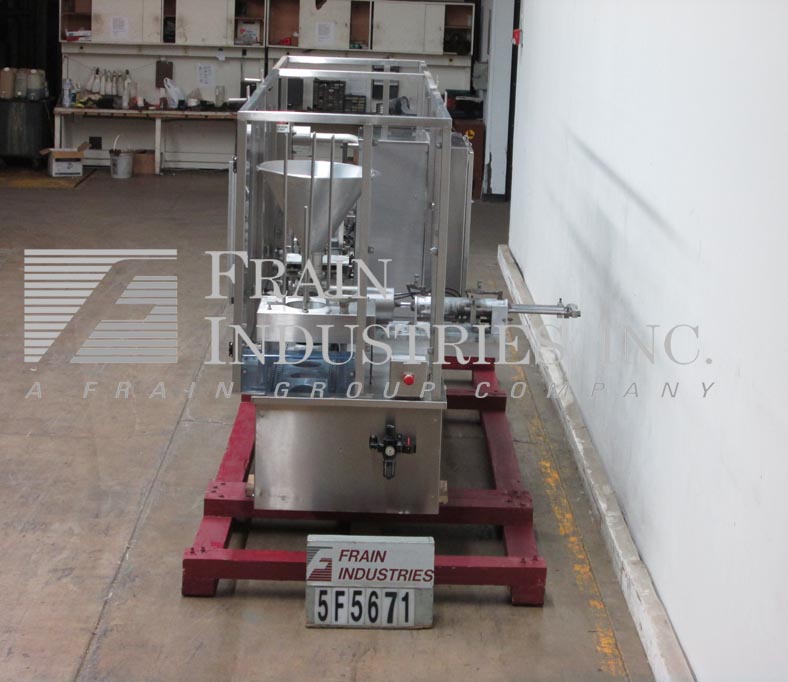 返回所有设备Holmatic Model PR1S,自动,不锈钢单线,杯填料,卷筒卷材封闭式封口机和LIDDER从10到40个容器每分钟 - 速度取决于材料和应用。集装箱尺寸:直径高达7英寸;高度高达6英寸。填充最多90盎司 - 具有适当的变化部件。配备杯脱巢站,不锈钢产品料斗,活塞填充站,没有集装箱/无填充功能,卷筒送液淘汰局部拆除薄膜,带有模具切割和热封站,带有46英寸长的滚筒盒和自动弹出的过喷夹。控制面板具有A / B PCU,带有Swing ARM控制器和拒绝,填充,盖子,输送机,加热器开/关开关,带有E-STOP的融合控制器,并安装在不锈钢基架上,安全防护。