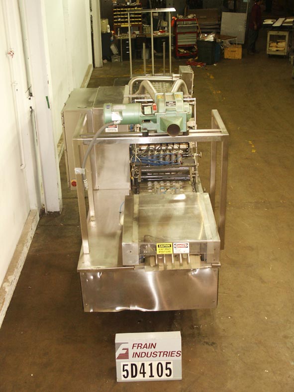 返回所有设备Holmatic,Model Pr6,自动不锈钢1 x 6车道杯封口机和潮流。每分钟120至180个容器 - 取决于材料和应用。集装箱尺寸:直径为5英寸;高达6英寸高。填充最多41盎司 - 具有适当的变化部件。配备27“杂志,真空拉下杯脱巢站。6头干产品挑选和放置。6头旋转阀活塞填料,具有(6)1”直径x 5“长(2盎司)活塞和潜水喷嘴;提供通过(2)3“OD /1¾”ID Tri-Clamp配件。滚动夯实篡改膜,具有真空废料。(6)2½“x 4”热封站站。(1)17“x4¾”冷却杆。自动弹出和整理部分。控制面板有开/关开/关开/关开/关用于热封,胶片注册,杯分配器,裂纹请求,填充物和切片。(6)热密封温度控制和按钮e-stop。安装在不锈钢底座上。
