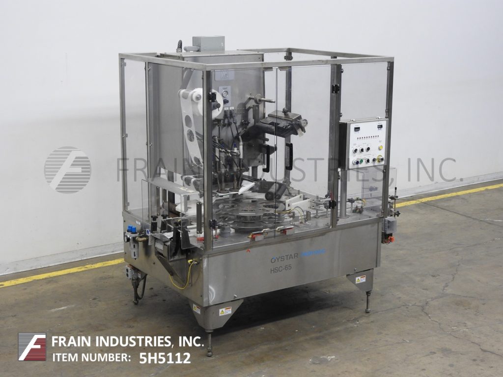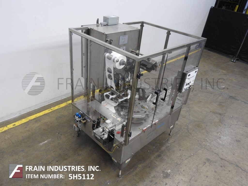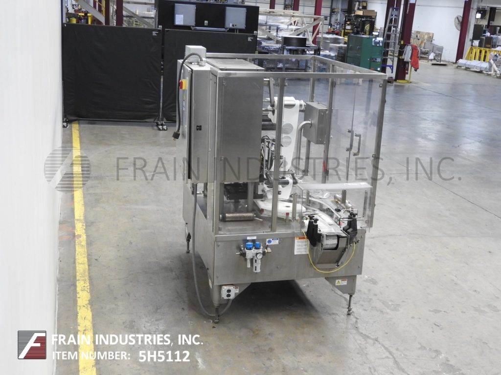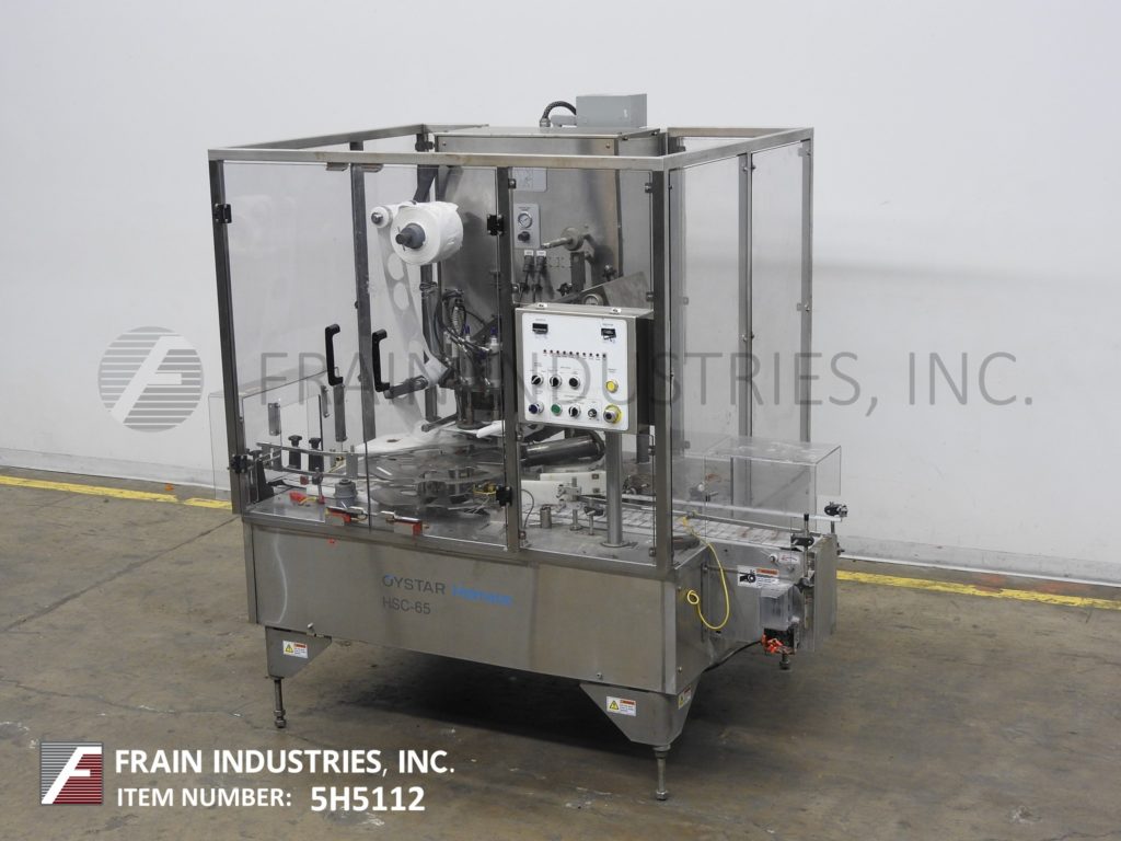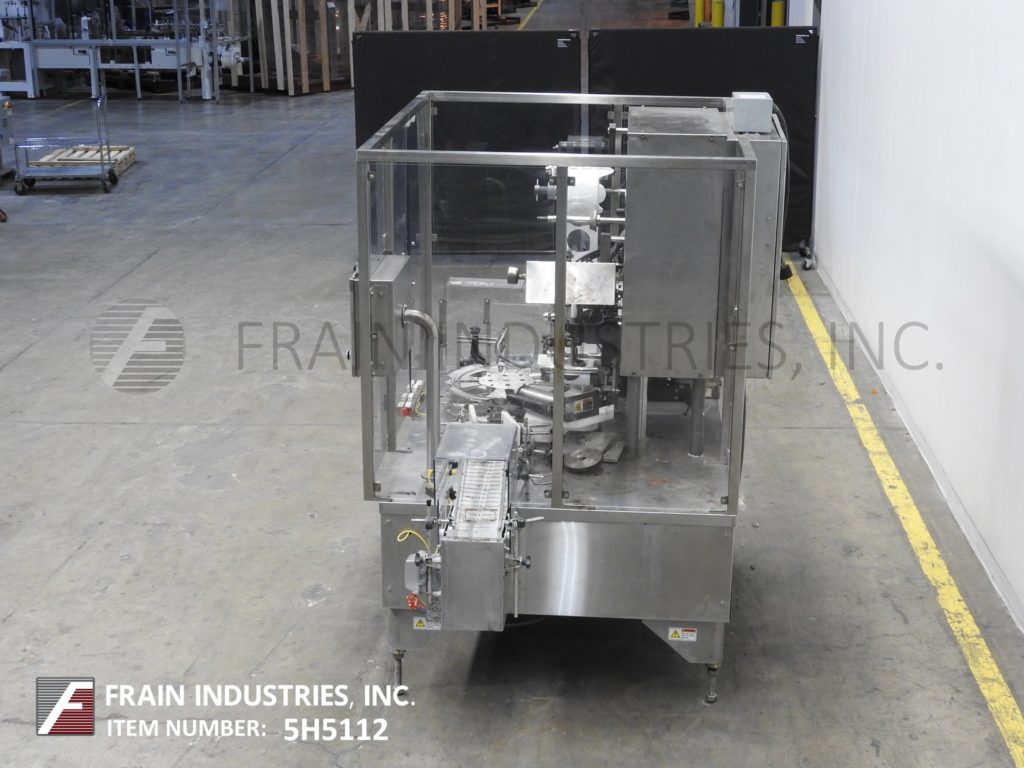返回所有设备Holmatic Model HSC65,自动,不锈钢,2孔,8个口袋旋转容器封口机,每分钟25至100杯 - 取决于材料和应用。容器尺寸:3/4“至7”直径和3/4“至6-1 / 2”矩形,高达8英寸,可以处理大多数具有适当的变化部件的形状。目前配备94“长x4-1 / 2“宽塑料DELRON CUP输送机,22”OD旋转匝桌与(8)杯车站,具有单芯切割密封头和废料胶片。控制面板有一个/ B PLC控制器,带有热封响应机,热封压力表,加热器仅开/关开关,集装箱运输和前进,反向,停止开关和启动,停止,e-stop按钮。安装在(4)腿不锈钢基架,互锁安全防护。