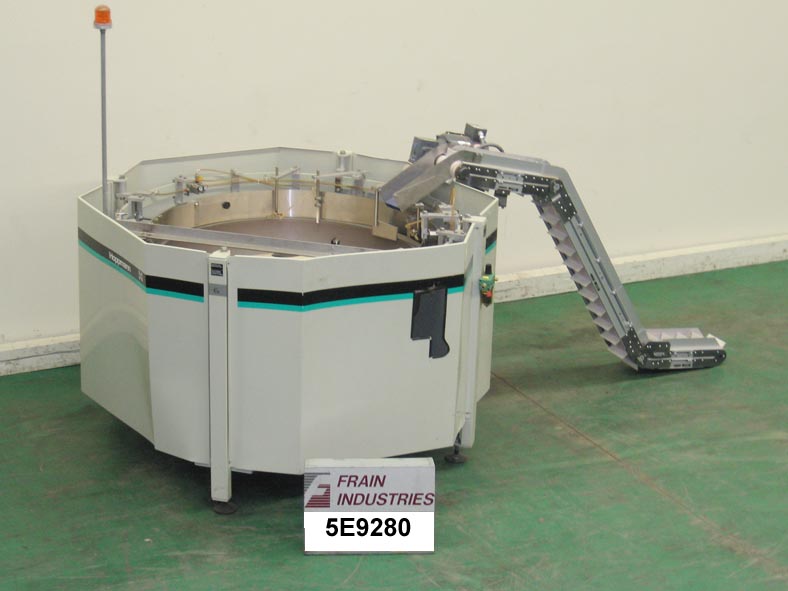 50“直径离心碗进纸器额定到2000份每分钟。环直径为72”,底部壳体直径为50“。配备8'L Z框架,用1 1/2”H夹板夹带。安装在可调高度螺杆腿上。
