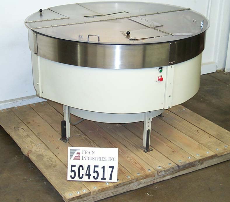 返回所有设备离心饲养者能够速度速度高达2000份每分钟依赖于零件尺寸,形状和进料特性。单位有4'直径碗25 Cu FT容量。配备SCR控制的变速驱动,调平腿,不锈钢工具,lexan和不锈钢防护装置。系统尺寸:顶部环直径为72“,底壳直径为50”。其他应用范围从火花塞,保险丝,垂脚插座和轴承到海绵,糖果,帽和灯泡。OAD:6'6“DIA X 4'H。