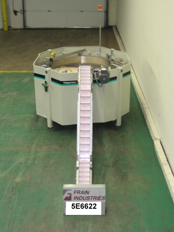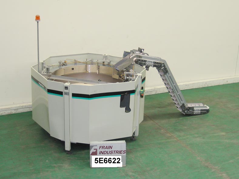 返回所有设备50" diameter (25 Cu Ft) capacity centrifugal bowl feeder rated to 2000 parts per minute. Ring diameter of 72" with a bottom shell diameter of 50". Equipped with an 8’L Z frame cleated infeed with 1 1/2" H cleats. Mounted on adjustable height screw legs.