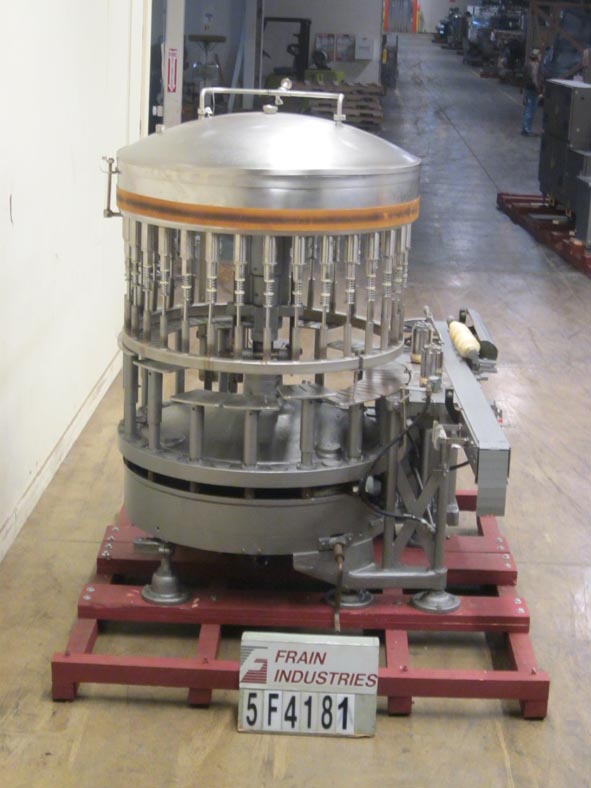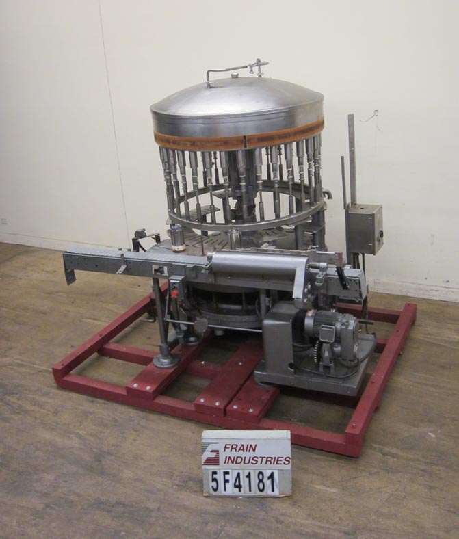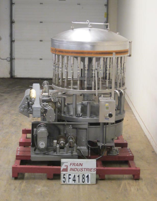 返回所有设备Horix自动,32头,旋转,重力真空填料额定从50到270个容器每分钟500ml灌装。最大容器直径尺寸:4-1/8"圆形和4-1/16"矩形容器和高达12"高填充500ml。配备48"直径表有(32)5/8"外径喷嘴设置在5"中心,9-1/2"长x 9-1/2"宽上升容器底座,79"长x 3-1/2"宽产品输送机与蠕虫螺杆星轮在进料和出料。304不锈钢接触部件,高架旋转阀产品进料系统,自底向上灌装,无容器/无灌装和CIP环,安装在涂漆的底座上。