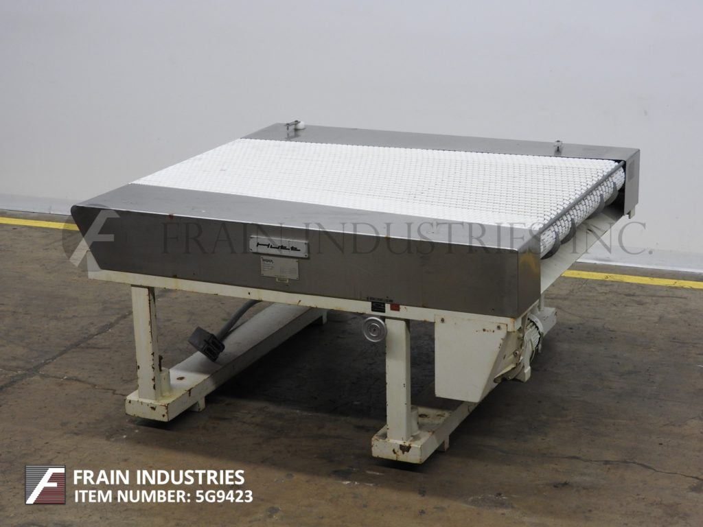 返回所有设备Hosokawa Bepex,Fa1300,扇形输送机。配备70英寸长的扇形带,由1 HP驱动器,可变速度齿轮箱,进给宽度为36“,排出口宽度为46英寸,在车道之间有1½英寸。安装在具有平整垫的(4)腿基座上,并提供36英寸进给/放电高度。