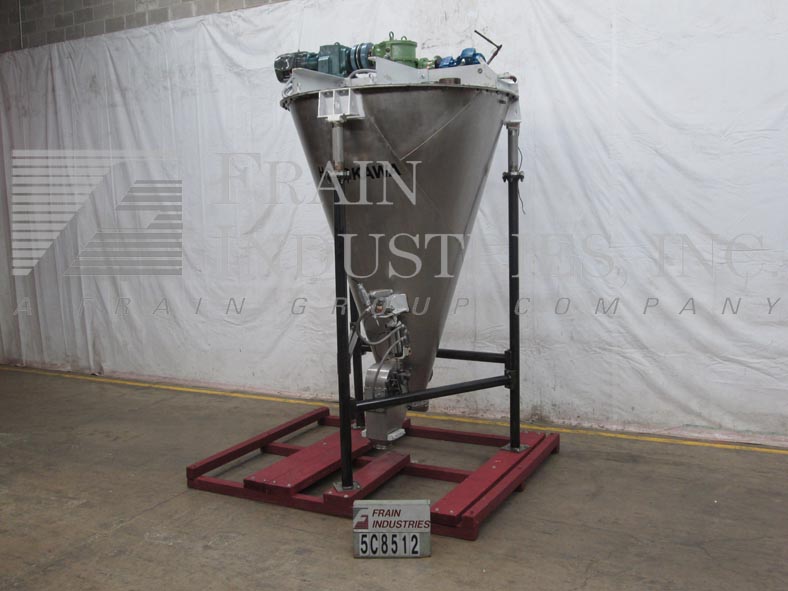 1,500升(53 CU FT)不锈钢垂直螺旋钳搅拌机工作能力从240到1200升。配备12英寸直径螺旋钻,多顶顶安装的翻盖产品端口和8“ID气动中心/侧底排放阀。OAD:135“(l)x 85”(直径。)