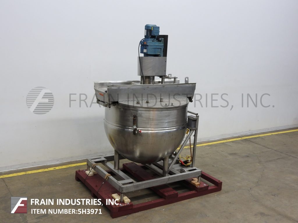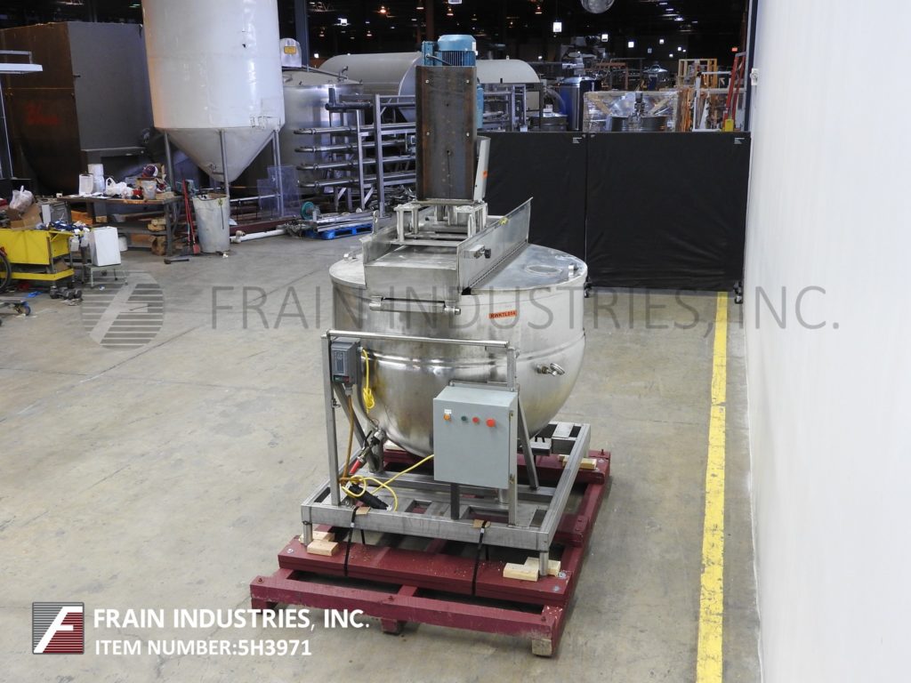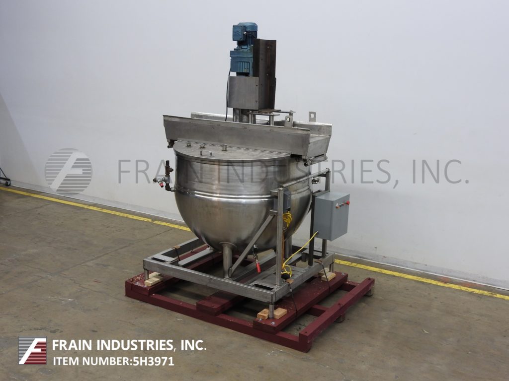返回所有设备Bh Hubbert 350加仑,304不锈钢夹套水壶。船舶尺寸:54“直径X 38”深,带11英寸的直墙。配备桥式刮膜。球形底部,带有3½“OD / 3”ID Tri-Clamp风格的中心底部放电,11“接地间隙。安装在(4)腿基框架上。