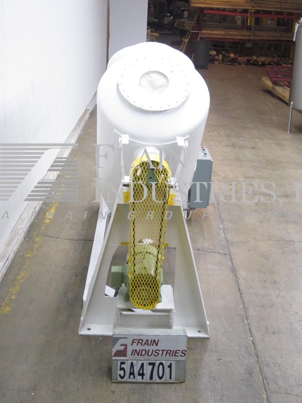 返回所有设备双壳体v型搅拌机最大工作容量225加仑,最大密度55磅/立方英尺。配备液体/固体棒。有38"直径的炮弹W/两个18"直径充电端口。12"直径排放12"离地面。软钢底座,安装在30英寸的底座上。单元内部有环氧树脂涂层。