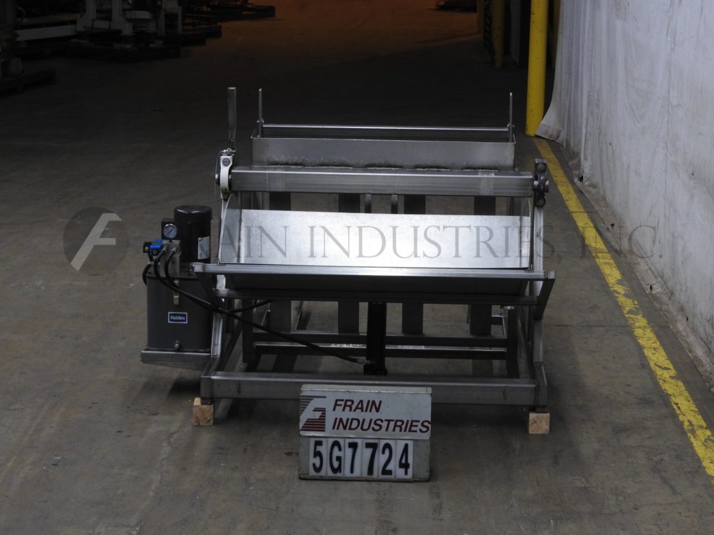 爱达荷设备和钣金公司,不锈钢手提袋翻车机。配备一个48"宽x 44"长x 44"高手提袋腔。由一个2马力的液压包驱动,泵的开关和翻车机的升降开关。要求84英寸高的天花板净空和排放在35英寸的高度。
