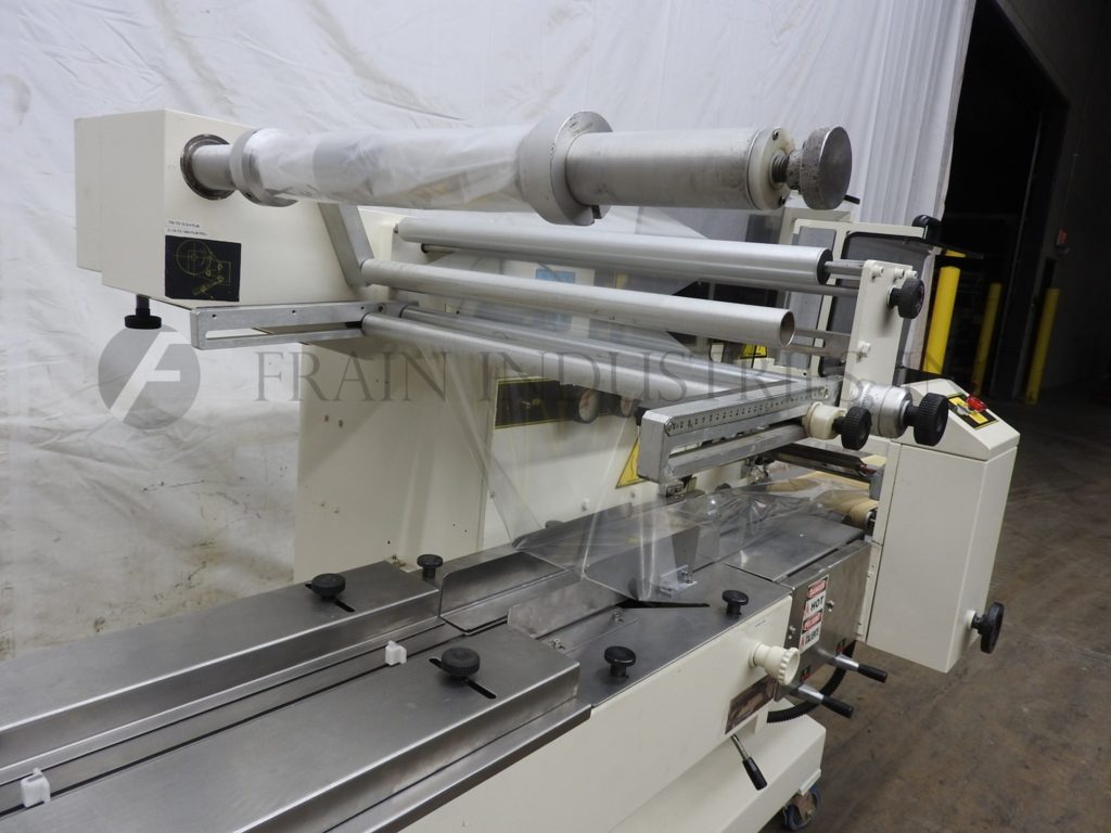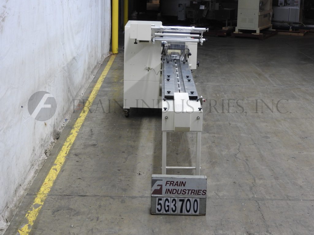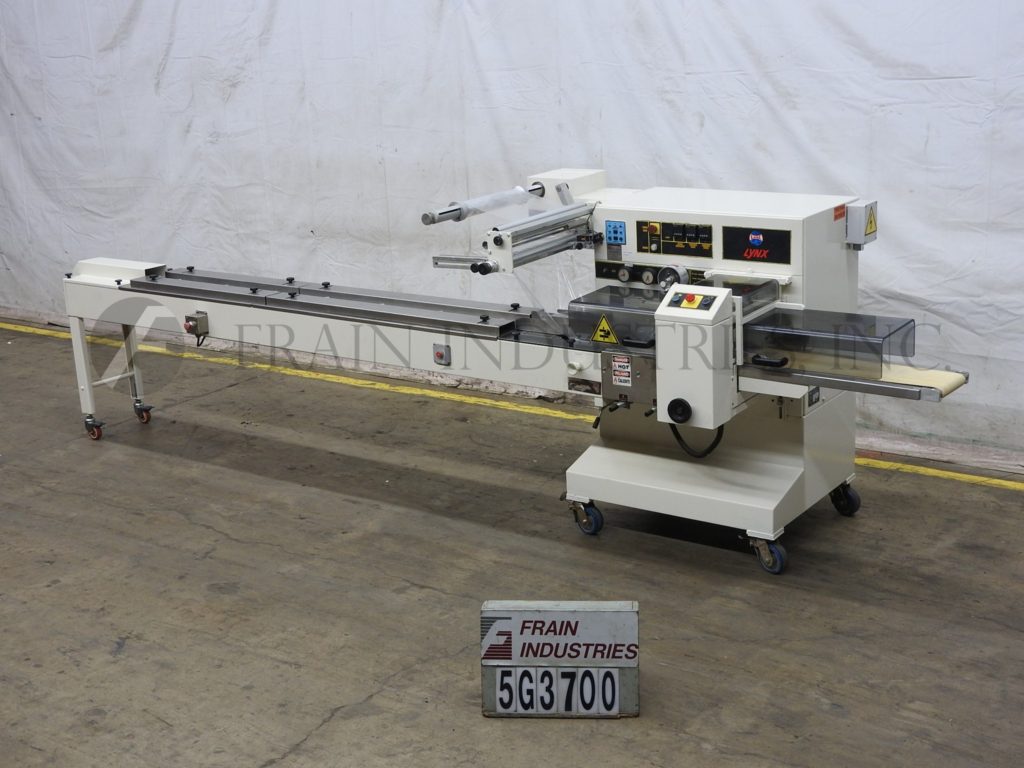 返回所有设备Ilapak型号Lynx,自动,1升,水平流包装器额定从40到100包每分钟-取决于材料和应用。包装尺寸范围:3"至15"长度;3/4"至8"宽度;高达3-1/2英寸的高度。在进料输送机配有96“长拖着84”的负载面积1“高凸耳目前11日”中心,形成头部,1 10“宽x 1”厚刀密封的下颚和2套鳍轮子1拉/ 1封翻转了安全警戒和32“长x九个半”宽放电输送机。控制面板具有上/下密封爪和鳍轮温度控制,带有启动、停止和e-停止按钮,并安装在带锁定脚轮的底座框架上。薄膜规格:宽度可达20英寸;直径可达13英寸;在3"核心与电影注册,
