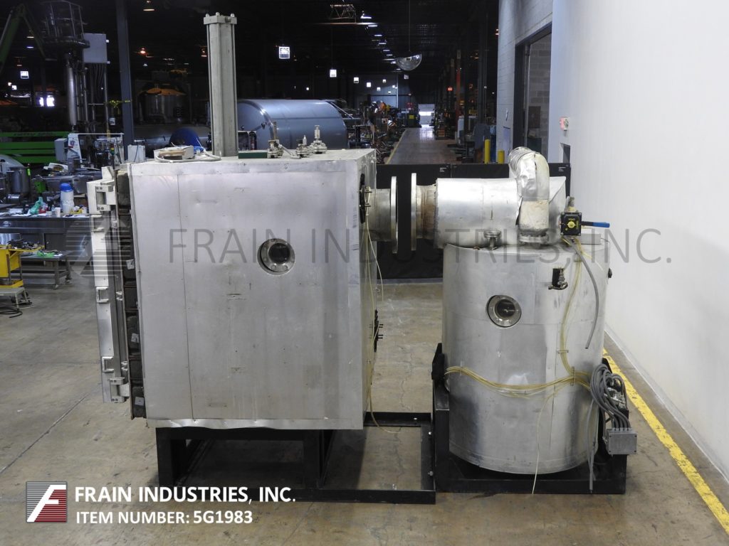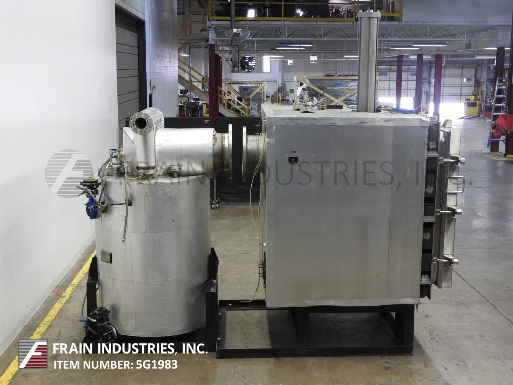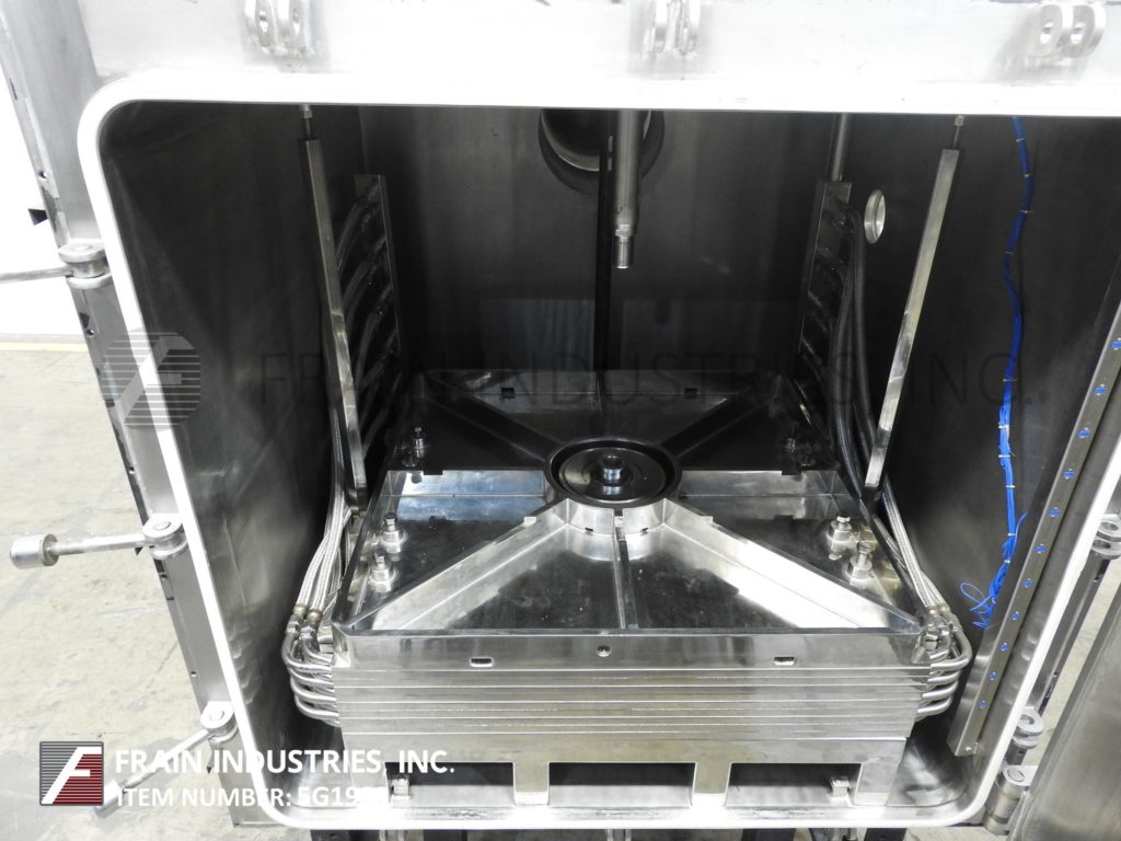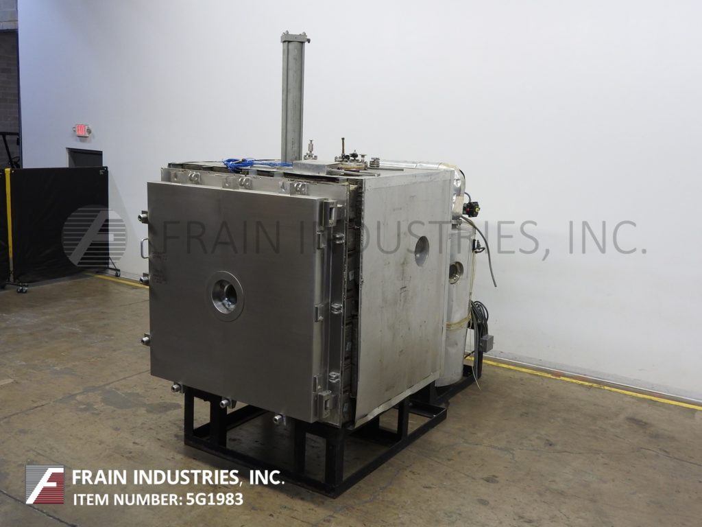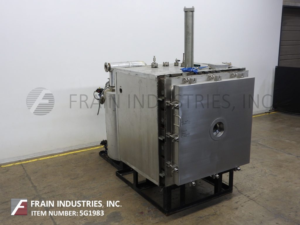 返回所有设备BOC爱德华兹,不锈钢,单门,冷冻干燥机,140平方英尺的可用产品货架区域与塞能力。60"宽x 72"高x 48"深总腔室尺寸与内顶板和(9)47-1/4" x 47-1/4"不锈钢压缩货架与螺栓向下摆动打开腔室门。配备液压封堵机构。外部冷凝器,制冷,传热,真空。控制面板有自动/手动,电源,真空,气体,除霜,加热和模式控制开关,与加热器控制和压力表和侧面遥控触摸板控制器。真空泵,WFS冷凝器压缩机,21psi @ 260℉,带有从制冷剂到冷凝器的热气体融霜,真空切断阀,氮气进气口。具有反向作用开关的高低压。
