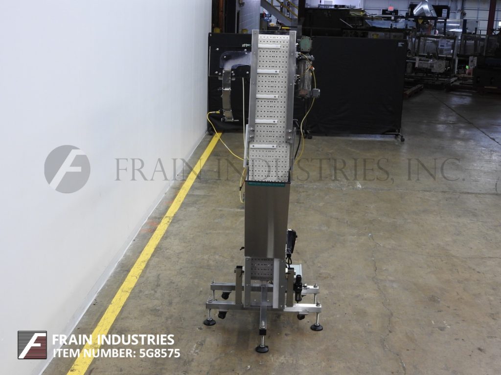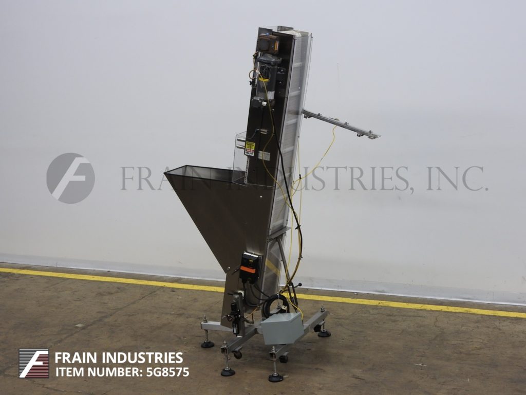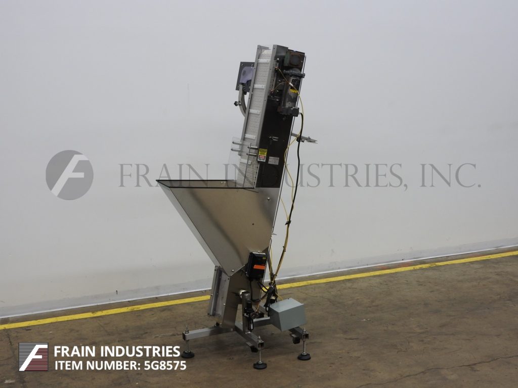 返回所有设备内联灌装解决方案,自动不锈钢水饰面盖式电梯/送料器和分拣机。每分钟50至300次缩写 - 取决于材料和应用。能够处理螺钉,卡扣或儿童防护帽(具有适当的变化部件)。配备12英寸宽X 64“长夹板传送带,½”高夹板7“中心,26英寸长x 12”宽x 24“深不锈钢散装产品料斗和77”排放高度。由带有变速控制的½HP驱动器供电。安装在带有平整垫的不锈钢基础上。