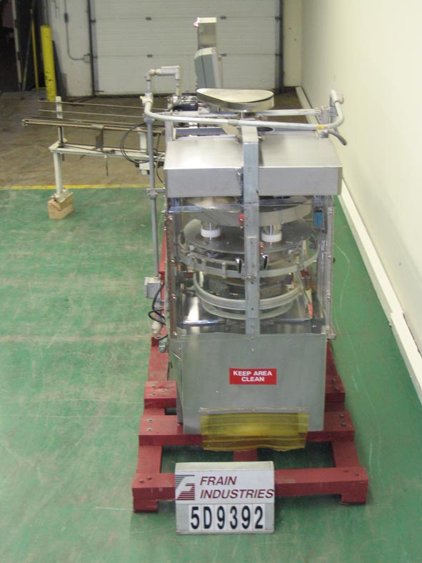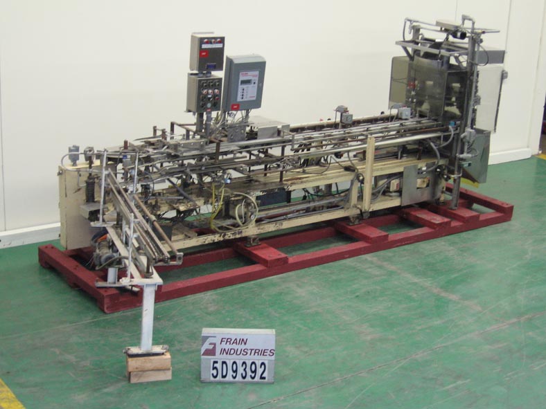 返回所有设备自动,连续运动,垂直,热熔胶箱速度从40至100箱每分钟-速度取决于材料和应用。纸箱:(2 - 8 1/4)L x(3/4”- 3 1/4”)W x (4 1/4 " - 11 1/4 ") D。有4杯旋转容积填料,4个30盎司杯,10“中心,固定的纸箱口袋,纸箱填充喷口,直角纸箱卸货,没有纸箱/没有填充,填充时解决纸箱振动器轨道,两个脚踏板的激活,E-stop,屏障保护,胶水控制器,和听觉报警。安装在油漆钢框架上,高度可调脚。