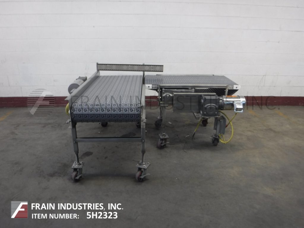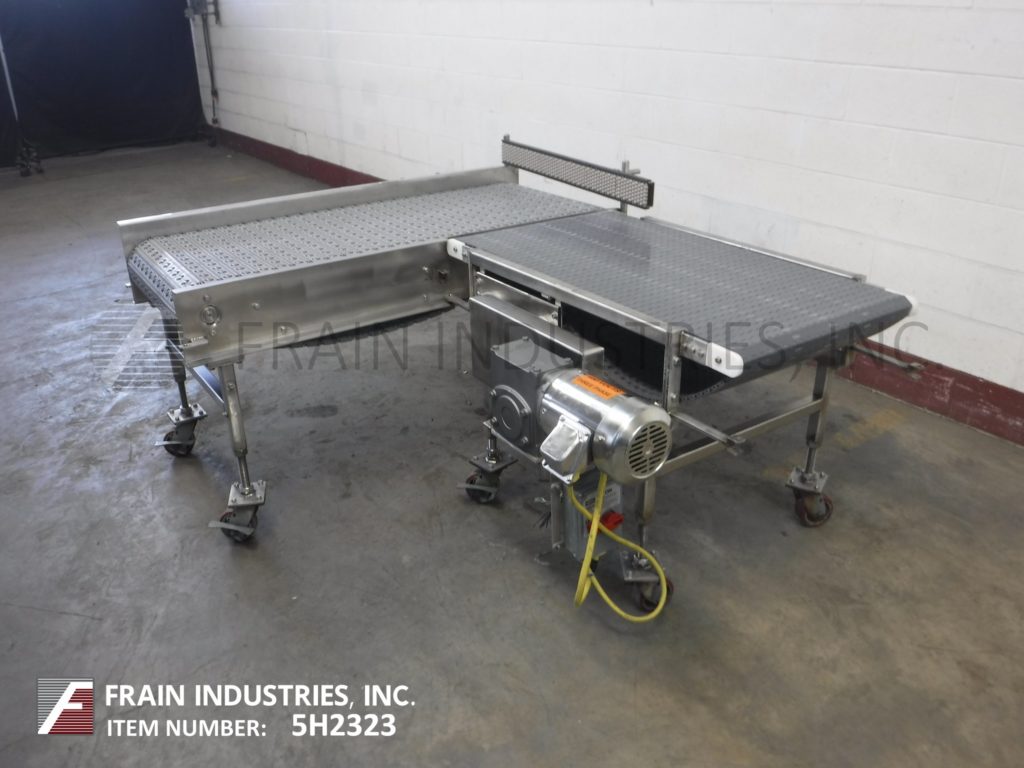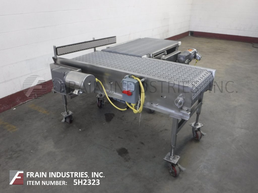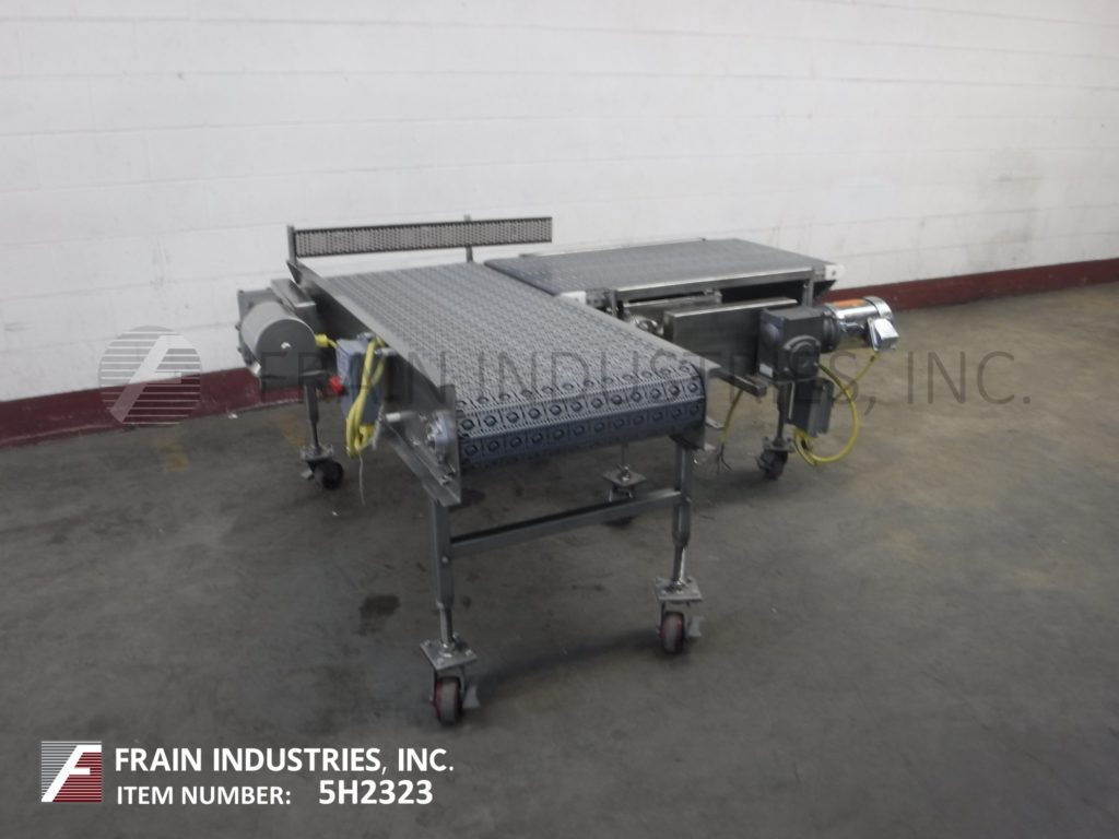 返回所有设备intralox,模型arb。活性滚筒带式输送机可实现精确可靠的合并和对准产品。配备24英寸宽x 45“长平板腰带进料输送机,24英寸宽x 57”长带供电1 HP电机驱动。由产品重量供电的活性辊。输送机具有28“至34”的饲料和放电范围。垂直于输送机馈送进料的包装。嵌入在皮带表面中的倾斜辊轻轻旋转封装90°并将产品沿着包装的长度对准单个车道。