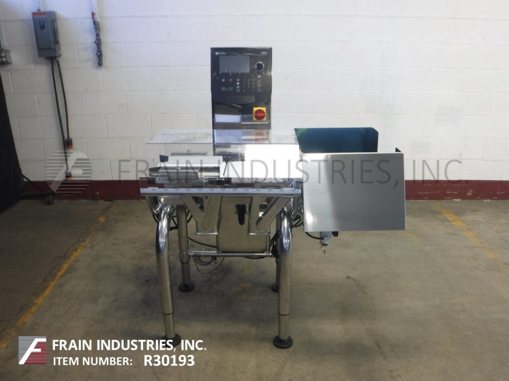 返回所有设备Ishida DACS,自动,三个区域,不锈钢检重秤额定高达300英尺/分钟。称重传感器:14“长度; 9.5”。重量范围:6至600克或15至1,500克。准确性:+/- 0.1克或+/- 0.2克。配备14英寸的宽氯丁丁烯,不锈钢导轨,14英寸“长的9.5”宽氯丁橡胶称重输送机,18英寸长的9.5“宽氯丁橡胶排放输送机,双风爆炸拒绝(一个超过/一下面)和触摸垫操作员接口,可视显示。安装在高度可调节的腿上。每分钟产品数量和依赖材料,应用,机器配置和环境的准确性。