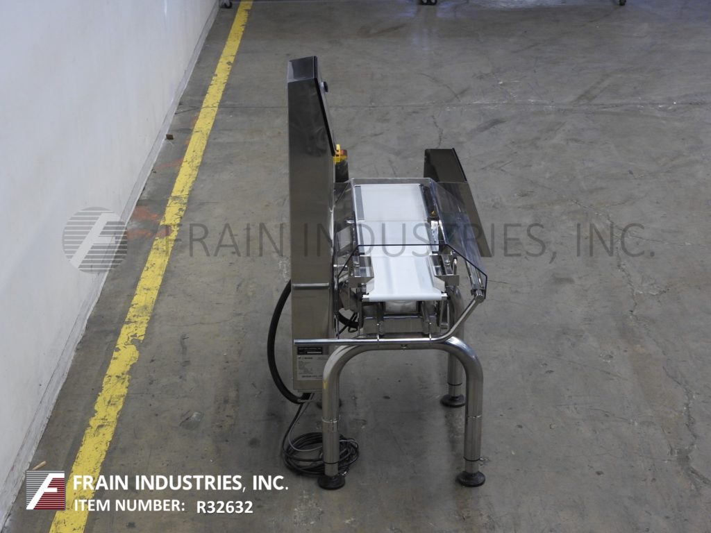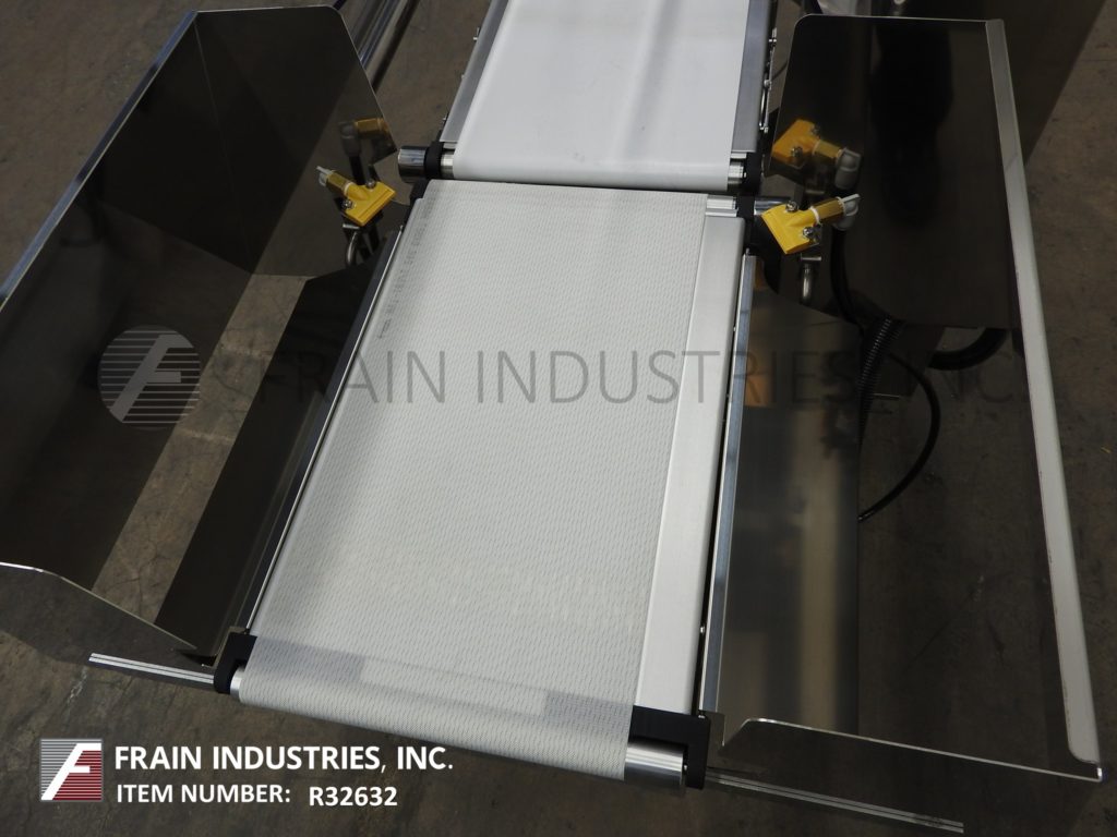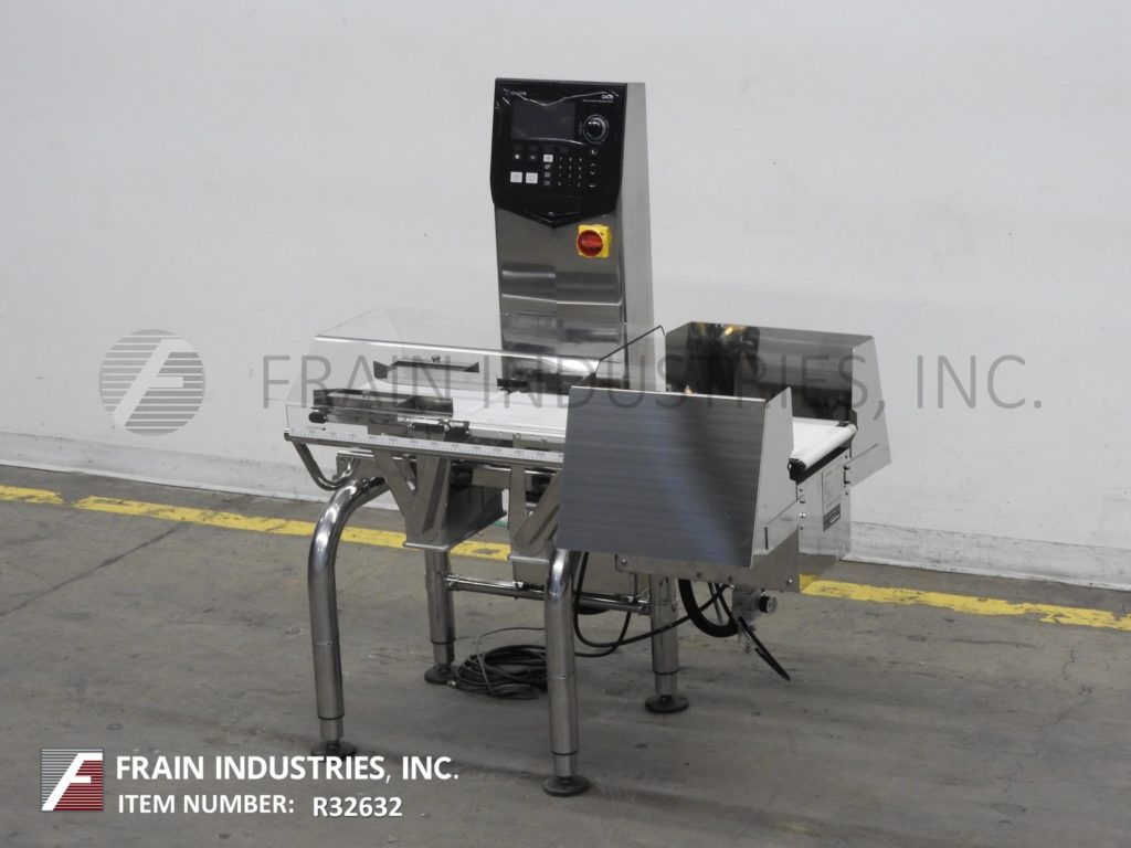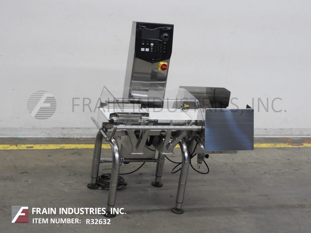 石田DACS-GN-S015-SS-1型,自动(3)区,304不锈钢校验秤。额定高达每分钟300英尺,产品数量取决于材料和应用。测压元件:长度为14英寸;9.5”宽。重量范围:6至600克和15至1500克,精度:±0.05克或±0.01克,精度取决于材料,应用,机器配置和运行环境。配备13.8"长x 9.5"宽氯丁橡胶饲料输送机,不锈钢导轨,13.8"长x 9.5"宽氯丁橡胶称重输送机,17.7"长x 9.5"宽氯丁橡胶卸料输送机与双吹风废弃物(一个/一个下)。控制面板带有触控板操作界面,7寸全彩色LCD显示,300个“预置”产品程序,SUSB记忆棒带有x -条形图和直方图,RS232串行输出原始重量数据。安装在(4)高度可调腿上。