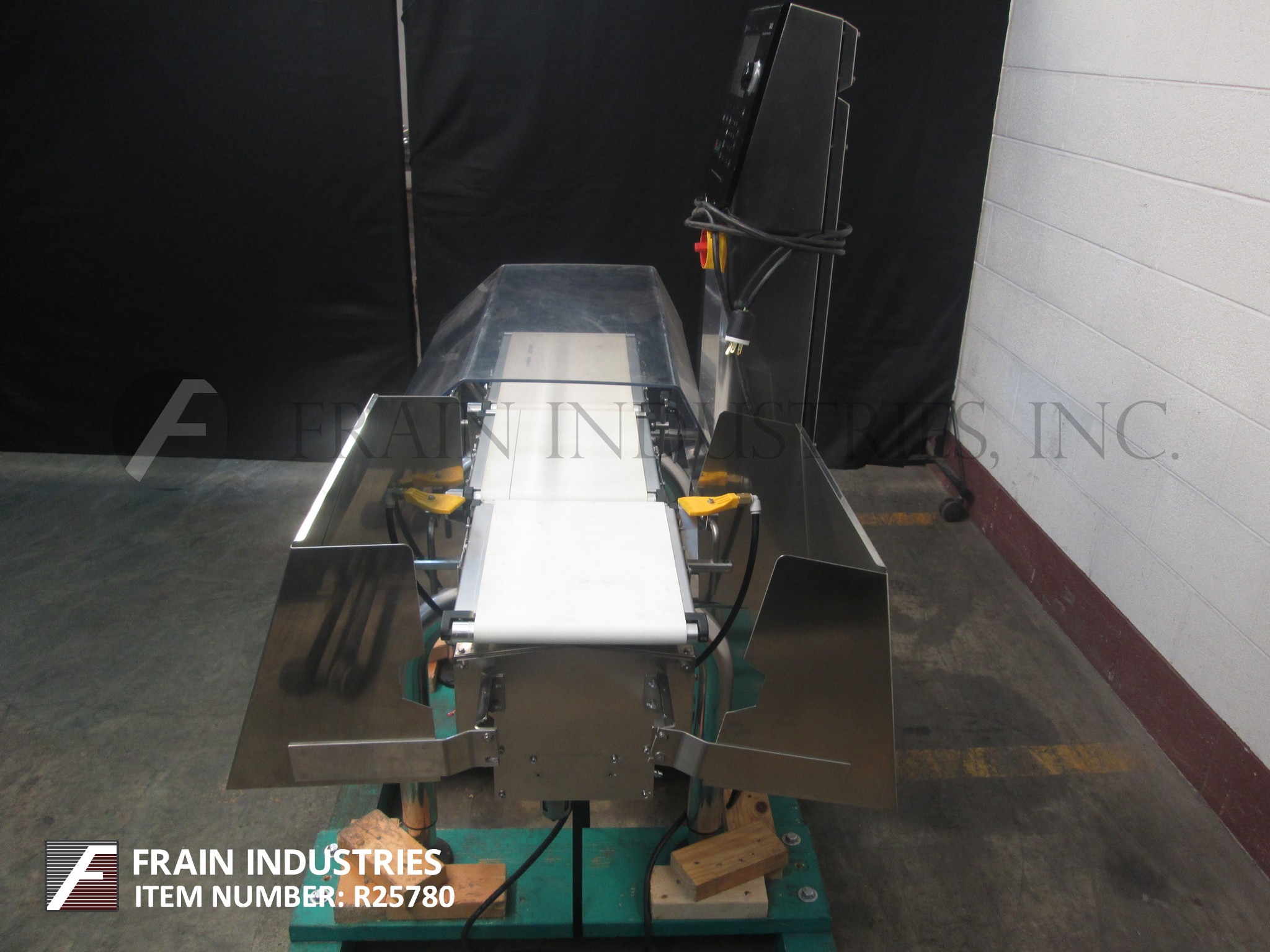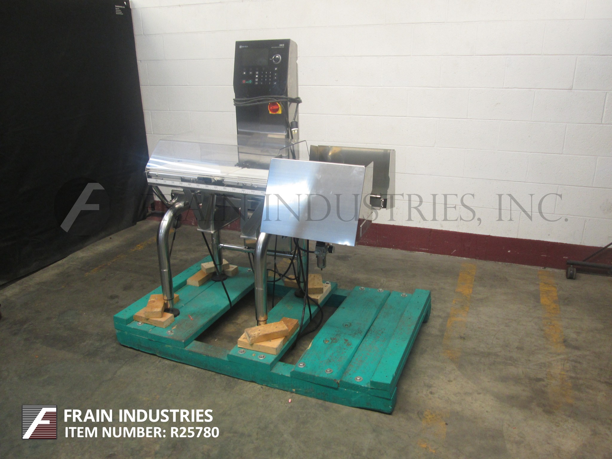 返回所有设备石田DACS,自动,三个区域,不锈钢校验秤额定高达300英尺每分钟-取决于材料和应用。测压元件:长度为14英寸;9.5”宽。重量范围:6至600克或15至1500克。精度:±0.1克或±0.2克。配备一个14"长× 9.5"宽氯丁橡胶进料输送机,不锈钢导轨,14"长× 9.5"宽氯丁橡胶称重输送机,两个鼓风废料(一个上/一个下),18"长× 9.5"宽氯丁橡胶排出输送机和触摸屏操作界面与可视化显示。安装在不锈钢支架上,支架高度可调。
