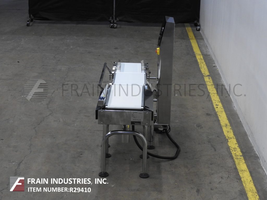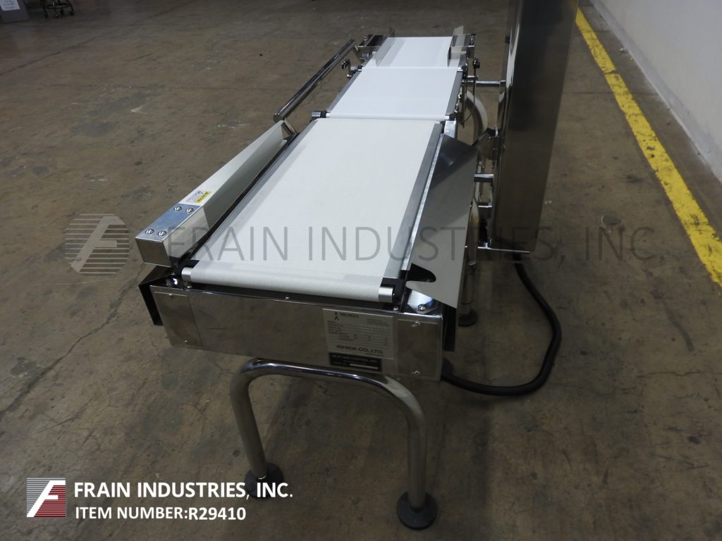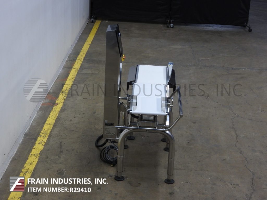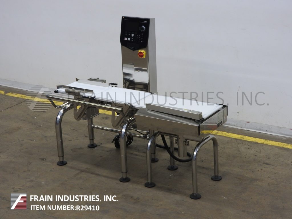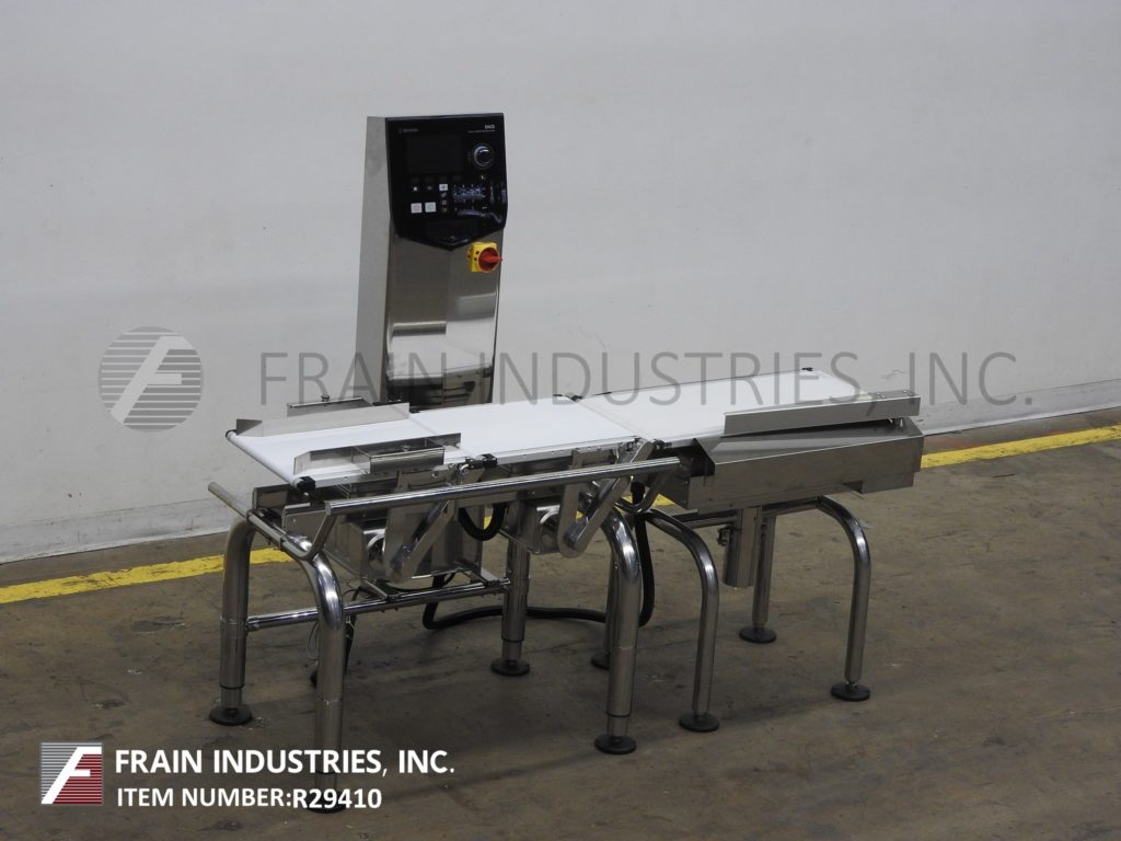 回到所有设备ISHIDA型号DACSGN-RE-060-A2-3 / SS-M-B,左右,不锈钢,皮带重型。每分钟1到240件物品,皮带速度可达120英尺/分钟 - 在材料和应用上进行。重量范围为60至6000克,最小毕业率为0.5克和+/- 1克的准确性。温度:0½C到40英尺,湿度为30-85%,无冷凝。配备(3)白色聚氨酯产品带(1)12-1 / 2“宽x 17”,进给皮带(1)12-1 / 2“宽x 17”长双梁称重电池和带(1)12-1 / 2“宽x 29”长放电带和机械拒绝手臂30英寸的饲料和排出高度。用触摸板控制器控制柱和带有e-stop的LED显示屏。安装在高度可调节的不锈钢底座上的输送机。